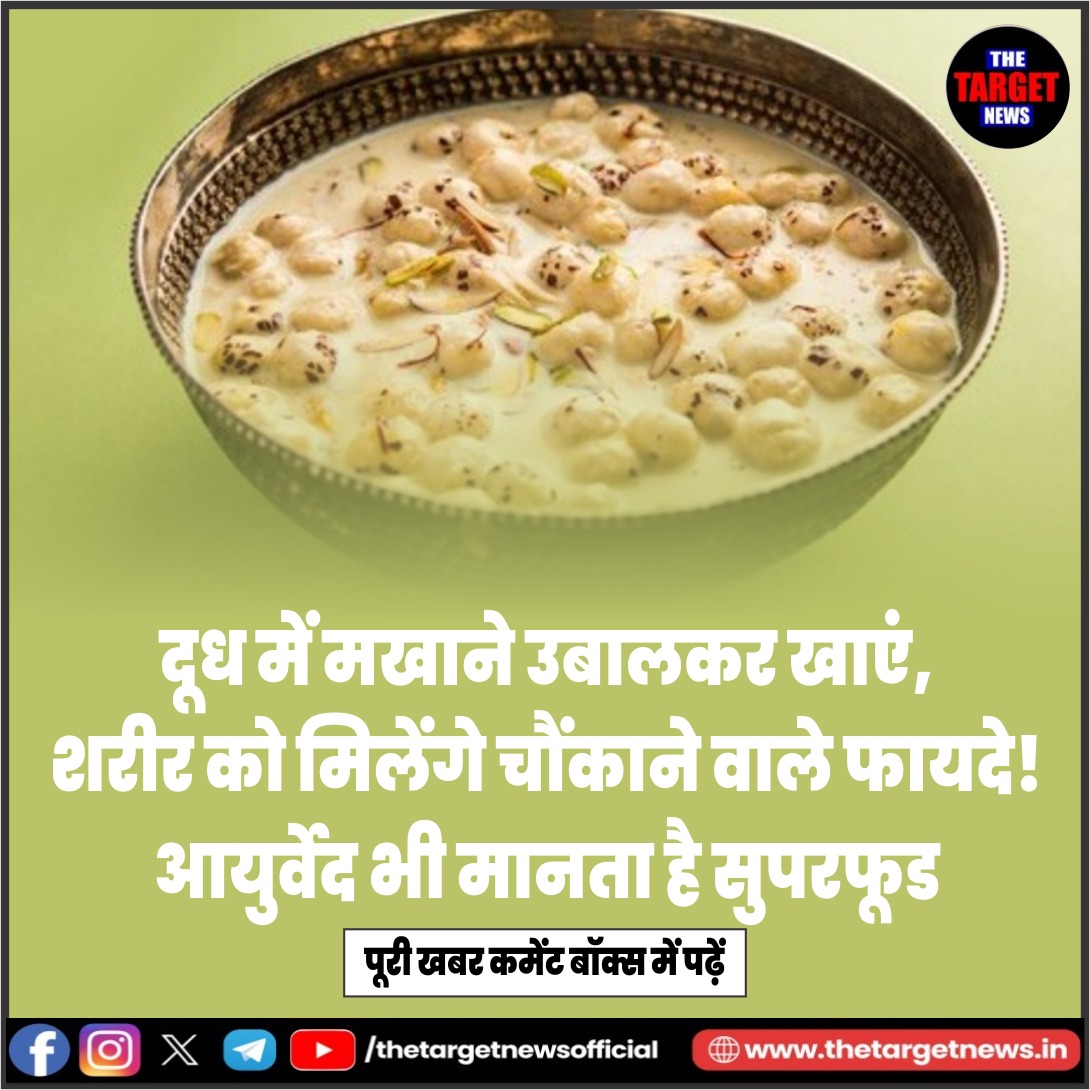 “Boil fox nuts (makhana) in milk and eat them — your body will get surprising benefits! Ayurveda also considers it a superfood.” आज की भागदौड़ भरी जिंदगी में गलत खान-पान और खराब लाइफस्टाइल के कारण लोगों में कमजोरी, थकान और कई तरह की बीमारियां तेजी से बढ़ रही हैं। ऐसे में आयुर्वेद और स्वास्थ्य विशेषज्ञ एक बेहद आसान और असरदार उपाय बताते हैं—दूध और मखाने का सेवन। आयुर्वेद में मखानों को एक शक्तिशाली सुपरफूड माना जाता है, और जब इन्हें दूध के साथ लिया जाता है तो इनके फायदे और भी बढ़ जाते हैं।