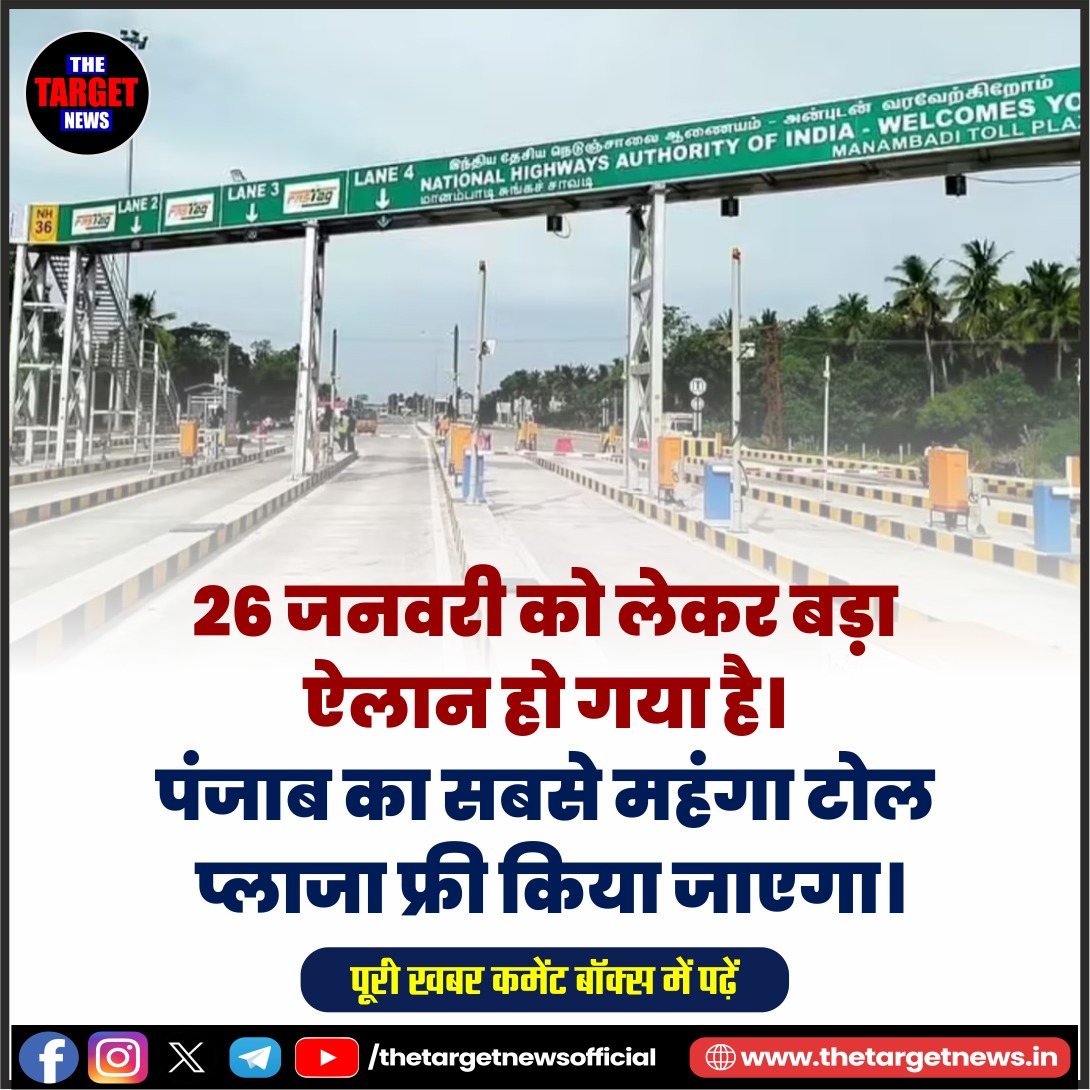 26 जनवरी को लेकर बड़ा ऐलान हो गया है। पंजाब का सबसे महंगा टोल प्लाजा फ्री किया जाएगा।