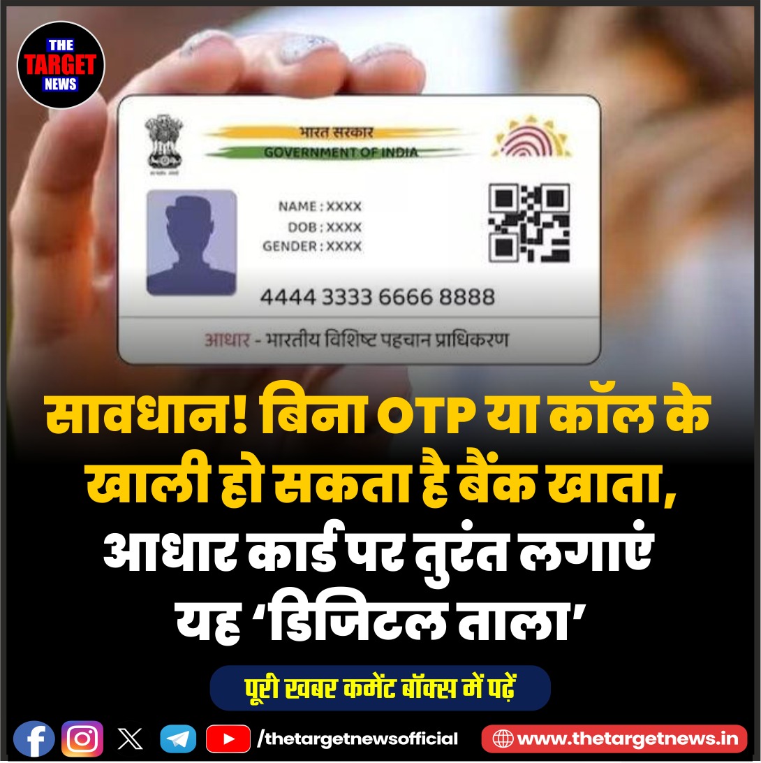 (Aadhaar Biometric Lock: New Shield Against Bank Fraud)डिजिटल इंडिया के इस दौर में जहां आधार कार्ड हर नागरिक की पहचान का सबसे अहम दस्तावेज बन चुका है, वहीं इससे जुड़ी साइबर ठगी भी तेजी से बढ़ रही है। अब ठगों ने ऐसा तरीका अपना लिया है, जिसमें न तो ओटीपी आता है और न ही कोई कॉल, लेकिन पलक झपकते ही बैंक खाता खाली हो जाता है। देश के अलग-अलग हिस्सों से सामने आ रहे ऐसे मामलों ने आम लोगों की चिंता बढ़ा दी है।