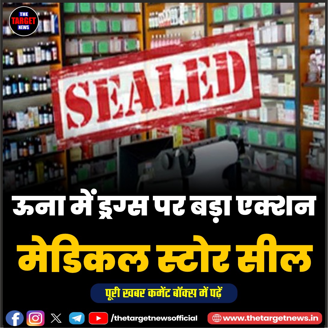 ( Major action against drugs in Una, medical store sealed ) ऊना जिले के अंब उपमंडल में नशीली और प्रतिबंधित दवाइयों के बड़े मामले में प्रशासन ने सख्त कदम उठाते हुए गोंदपुर बनेहड़ा स्थित एक मेडिकल स्टोर को सील कर दिया है। ड्रग कंट्रोल विभाग की इस कार्रवाई से पूरे इलाके में हड़कंप मच गया है और अवैध दवा कारोबार करने वालों को साफ संदेश मिल गया है कि अब किसी भी तरह की लापरवाही बर्दाश्त नहीं होगी।