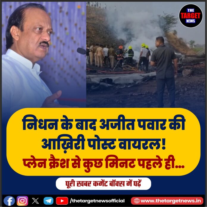 (Ajit Pawar’s Last Post Goes Viral After Tragic Plane Crash)महाराष्ट्र की राजनीति से बुधवार को एक बेहद दुखद और चौंकाने वाली खबर सामने आई, जिसने पूरे देश को स्तब्ध कर दिया। महाराष्ट्र के उपमुख्यमंत्री अजीत पवार एक भीषण विमान हादसे का शिकार हो गए, जिसमें उनका निधन हो गया। इस दर्दनाक दुर्घटना में कुल 5 लोगों की जान चली गई। जैसे ही यह खबर सामने आई, राजनीतिक गलियारों से लेकर आम जनता तक शोक की लहर दौड़ गई।