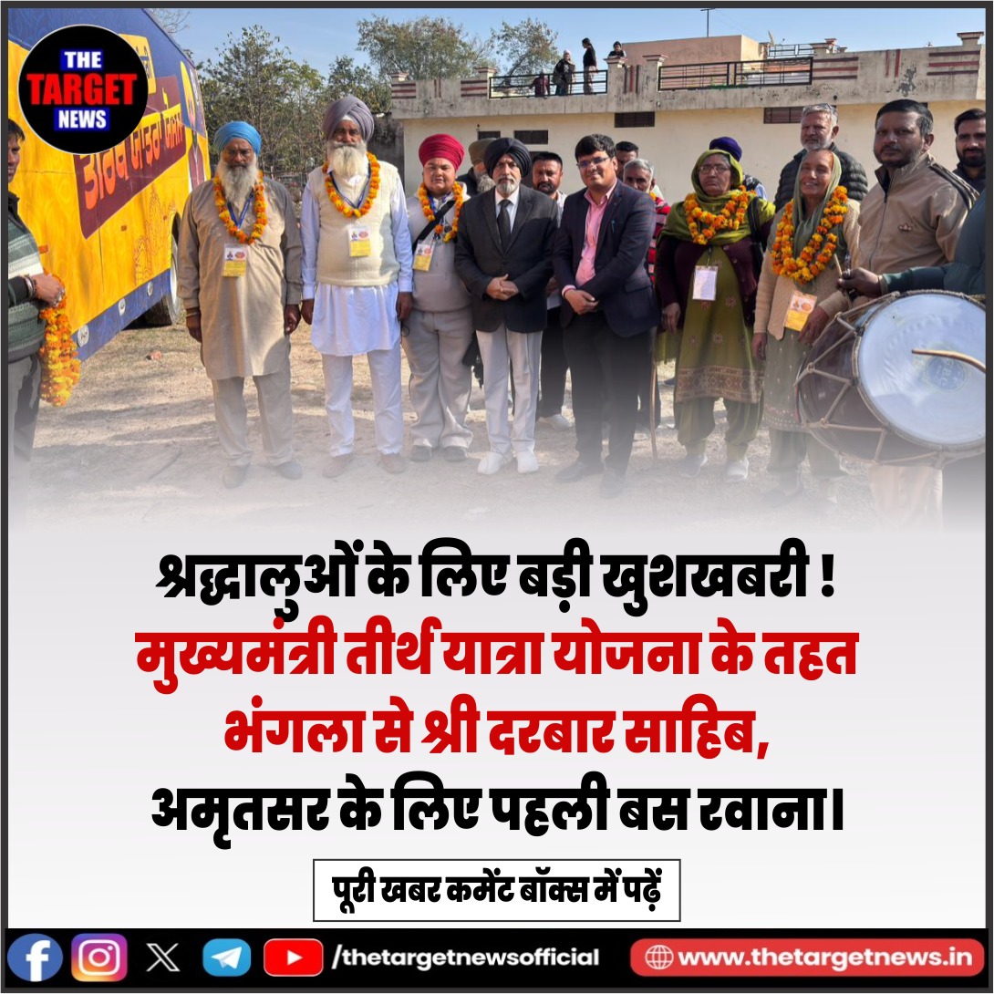 (Pilgrims Bus Flagged Off to Amritsar Sahib Under CM Pilgrimage Scheme)рдкрдВрдЬрд╛рдм рд╕рд░рдХрд╛рд░ рдХреА рдорд╣рддреНрд╡рд╛рдХрд╛рдВрдХреНрд╖реА рдореБрдЦреНрдпрдордВрддреНрд░реА рддреАрд░реНрде рдпрд╛рддреНрд░рд╛ рдпреЛрдЬрдирд╛ рдХреЗ рддрд╣рдд рд╢реНрд░рджреНрдзрд╛рд▓реБрдУрдВ рдХреЛ рдзрд╛рд░реНрдорд┐рдХ рд╕реНрдерд▓реЛрдВ рдХреЗ рджрд░реНрд╢рди рдХрд░рд╛рдиреЗ рдХрд╛ рд╕рд┐рд▓рд╕рд┐рд▓рд╛ рд▓рдЧрд╛рддрд╛рд░ рдЖрдЧреЗ рдмрдврд╝ рд░рд╣рд╛ рд╣реИред рдЗрд╕реА рдХреНрд░рдо рдореЗрдВ рд╢рдирд┐рд╡рд╛рд░ рдХреЛ рднрдВрдЧрд▓рд╛ рд╕реЗ рд╢реНрд░реА рджрд░рдмрд╛рд░ рд╕рд╛рд╣рд┐рдм, рдЕрдореГрддрд╕рд░ рд╕рд╛рд╣рд┐рдм рдХреЗ рд▓рд┐рдП рд╢реНрд░рджреНрдзрд╛рд▓реБрдУрдВ рдХреА рдкрд╣рд▓реА рдмрд╕ рдХреЛ рд╣рд░реА рдЭрдВрдбреА рджрд┐рдЦрд╛рдХрд░ рд░рд╡рд╛рдирд╛ рдХрд┐рдпрд╛ рдЧрдпрд╛ред рдЗрд╕ рдкрд╣рд▓ рд╕реЗ рдХреНрд╖реЗрддреНрд░ рдХреЗ рд╢реНрд░рджреНрдзрд╛рд▓реБрдУрдВ рдореЗрдВ рдЦрд╛рд╕рд╛ рдЙрддреНрд╕рд╛рд╣ рджреЗрдЦрдиреЗ рдХреЛ рдорд┐рд▓рд╛ред