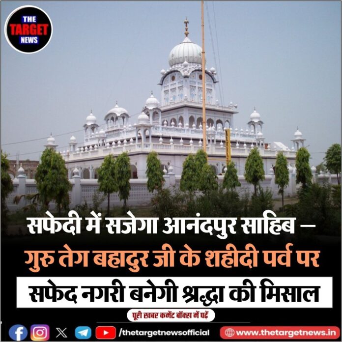 (Anandpur Sahib to Shine in White — A Symbol of Devotion on Guru Tegh Bahadur Ji’s Martyrdom Day)पंजाब का पवित्र नगर श्री आनंदपुर साहिब इन दिनों एक नई पहचान की तैयारी में है। आगामी 20 से 26 नवंबर तक गुरु तेग बहादुर जी की 350वीं शहीदी वर्षगांठ के उपलक्ष्य में पूरा शहर सफेद रंग में रंगा जाएगा। जी हाँ — हर गली, हर दीवार और हर इमारत सफेदी में नहाएगी, मानो पूरा नगर एक ही स्वर में गुरु जी की शहादत को नमन कर रहा हो।