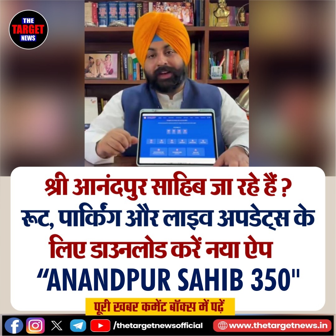 (Download ‘AnandpurSahib350’ for Routes & Live Updates)श्री गुरु तेग बहादुर साहिब जी की 350वीं शहादत वर्षगांठ को भव्य और सुव्यवस्थित तरीके से मनाने के लिए पंजाब सरकार ने डिजिटल मोर्चे पर बड़ा कदम उठाया है। पंजाब के शिक्षा एवं सूचना-जनसंपर्क मंत्री हरजोत सिंह बैंस ने श्रद्धालुओं की सुविधा के लिए एक अत्याधुनिक मोबाइल ऐप और वेबसाइट “AnandpurSahib350.com” लॉन्च की है, जो श्री आनंदपुर साहिब पहुंचने वाले लाखों श्रद्धालुओं के लिए एक वन-स्टॉप डिजिटल प्लेटफ़ॉर्म साबित होगा।