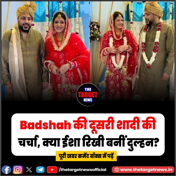रिपोर्ट्स के मुताबिक, Badshah ने अपनी कथित गर्लफ्रेंड और पंजाबी अभिनेत्री Isha Rikhi के साथ एक निजी समारोह में शादी रचाई है। बताया जा रहा है कि यह शादी बेहद सीमित लोगों की मौजूदगी में हुई। खास बात यह है कि उनकी शादी की चर्चा तब तेज हुई जब ईशा रिखी की मां ने सोशल मीडिया पर कुछ खास तस्वीरें शेयर कीं।