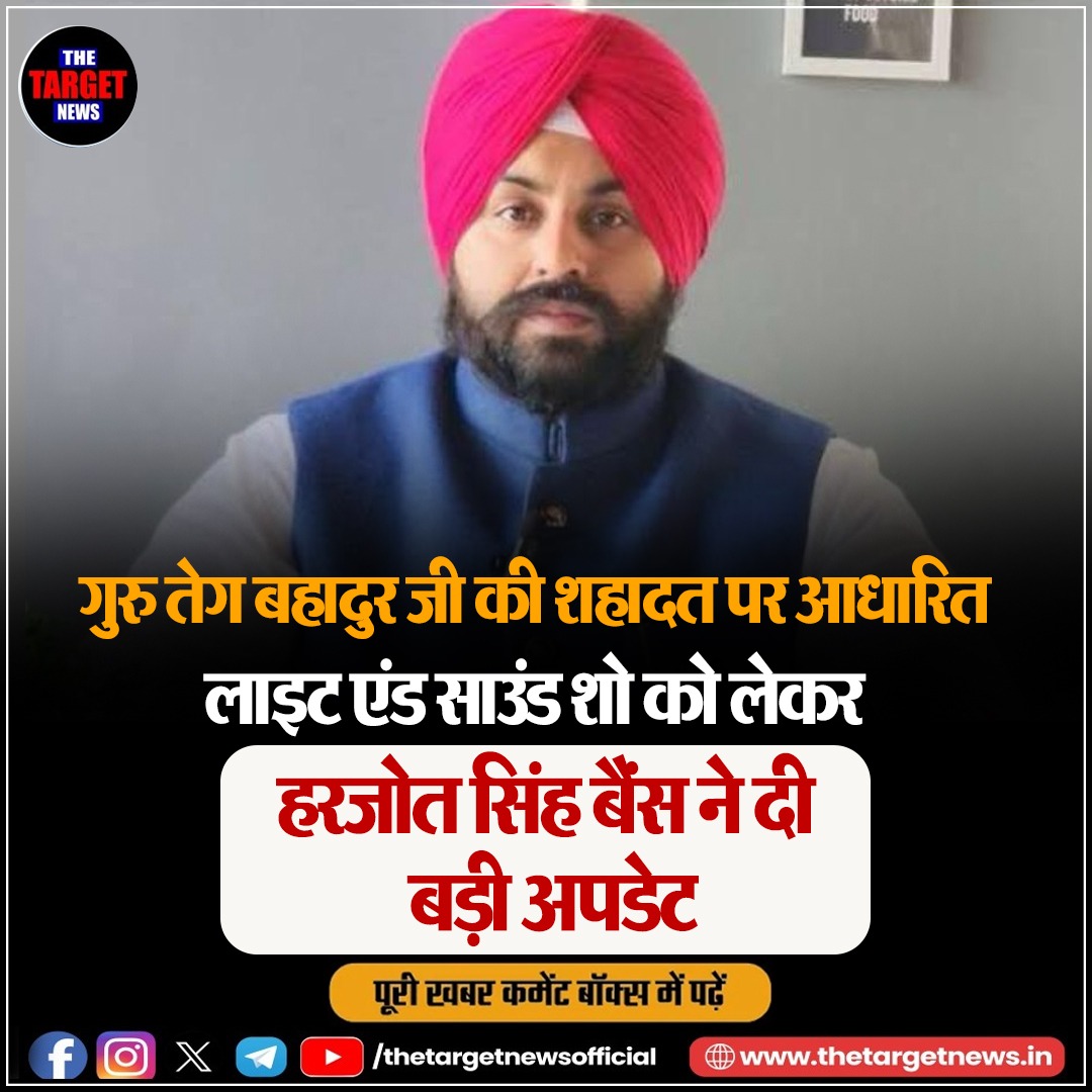 (Bains Announces Major Update on Guru Tegh Bahadur Ji Light & Sound Show)नौवें पातशाह श्री गुरु तेग बहादुर जी के जीवन, उपदेशों और शहादत को दर्शाने वाला भव्य लाइट एंड साउंड शो अब 29 नवंबर तक जारी रहेगा। यह जानकारी पंजाब के कैबिनेट मंत्री व श्री आनंदपुर साहिब के विधायक श्री हरजोत सिंह बैंस ने दी।