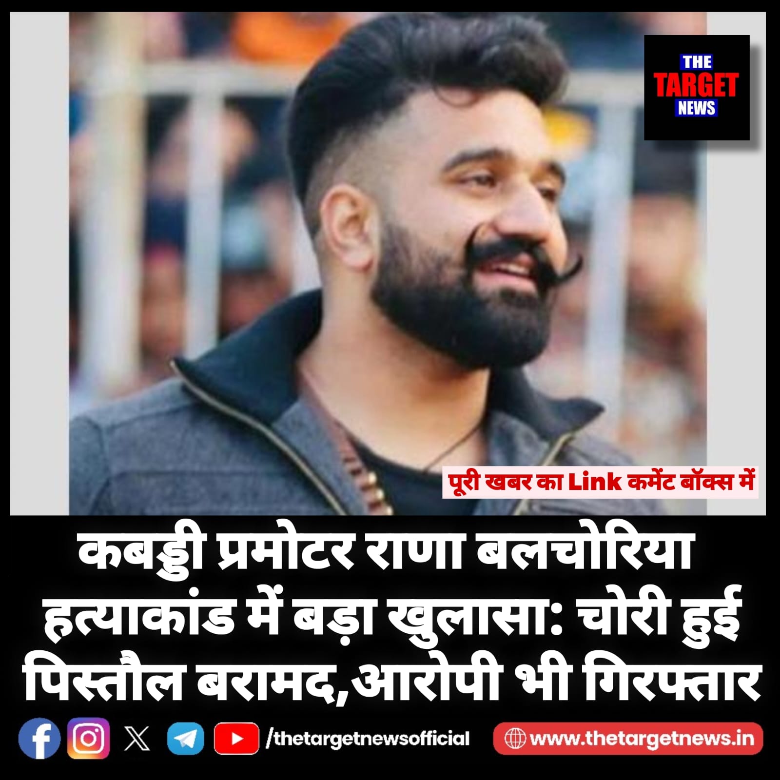 (Big revelation in Kabaddi promoter Rana Balachoria murder case: Stolen pistol recovered, accused also arrested )बठिंडा पुलिस ने पिछले साल 15 दिसंबर को मोहाली जिले के सोहाना में कबड्डी टूर्नामेंट के दौरान गोली मारकर हत्या किए गए कबड्डी प्रमोटर कंवर दिग्विजय सिंह उर्फ राणा बलाचौरिया की चोरी हुई पिस्तौल बरामद कर ली है।