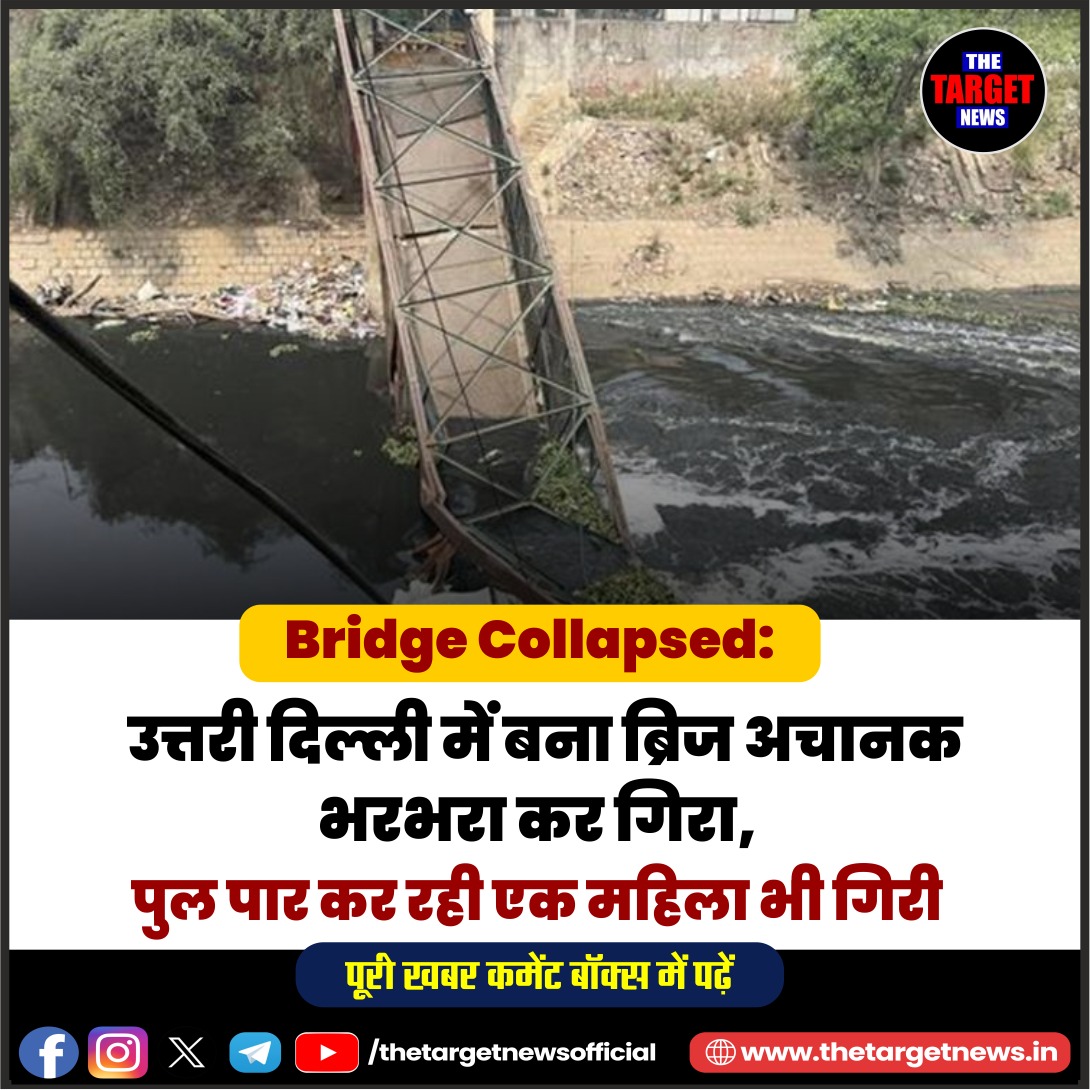 Bridge Collapsed: A bridge in North Delhi suddenly collapsed; a woman crossing it also fell down देश की राजधानी दिल्ली के रूपनगर इलाके से एक दिल दहला देने वाली खबर सामने आई है। मंगलवार की सुबह ब्लॉक-3 में मदर डेयरी के पास स्थित एक पुराना लोहे का फुटओवर ब्रिज अचानक भरभरा कर गंदे नाले में जा गिरा। हादसे के वक्त पुल पार कर रही एक महिला भी मलबे के साथ गहरे नाले में समा गई, जिसकी तलाश के लिए युद्ध स्तर पर रेस्क्यू ऑपरेशन चलाया जा रहा है।