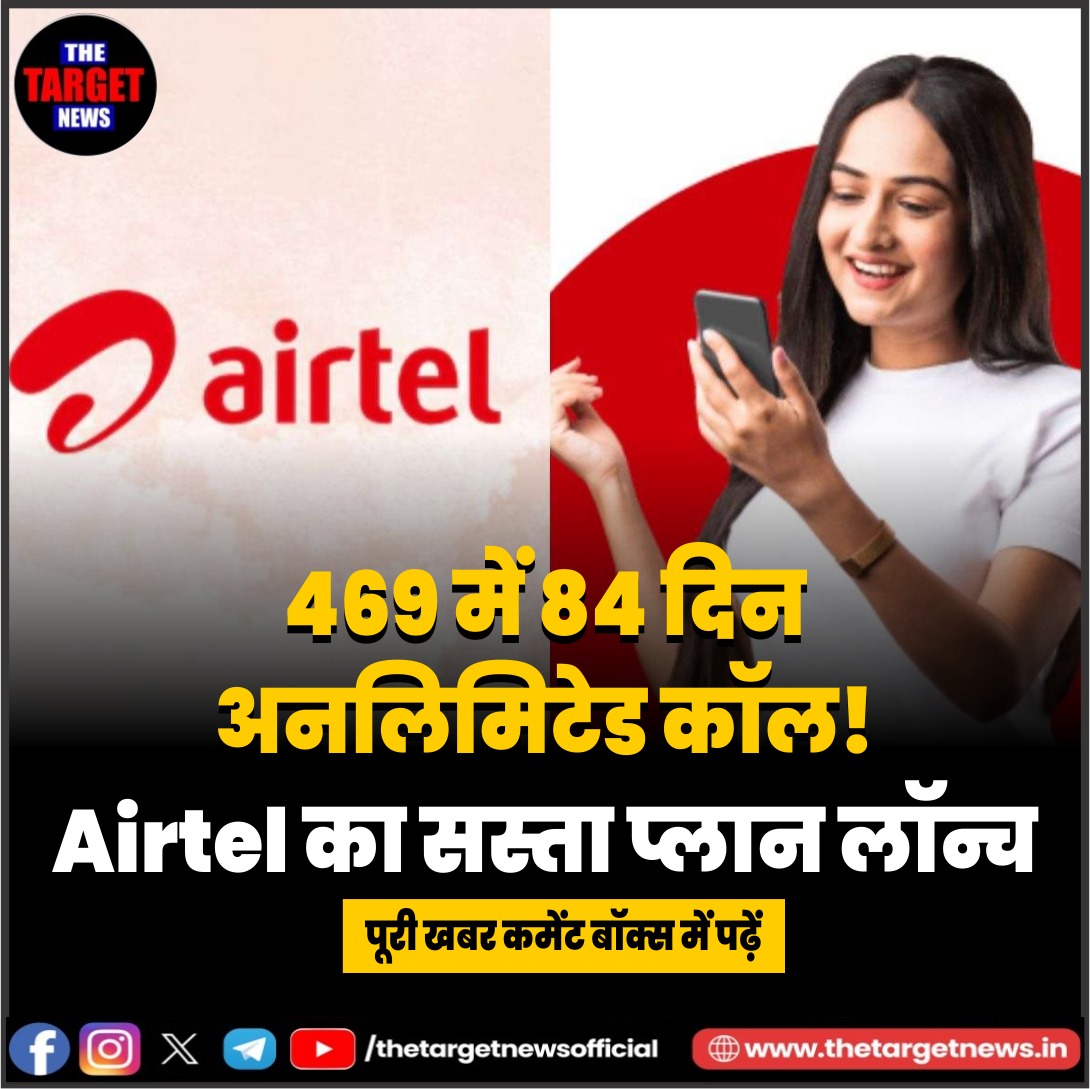 (“Unlimited Calling for 84 Days at ₹469! Airtel Launches Budget Plan “) टेलीकॉम कंपनी Airtel ने अपने ग्राहकों के लिए एक शानदार और किफायती प्लान पेश किया है, जो खास तौर पर उन यूजर्स के लिए डिजाइन किया गया है जिन्हें सिर्फ कॉलिंग की जरूरत होती है।