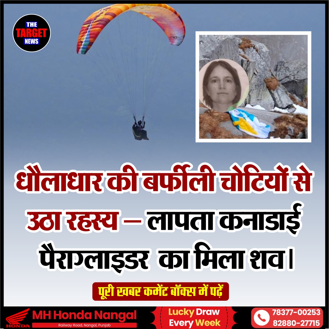 (Canadian paraglider Megan Roberts found dead in Dhauladhar mountains; safety concerns resurface)हिमाचल प्रदेश की धौलाधार की ऊंची पहाड़ियों में लापता कनाडाई पैराग्लाइडर मेगन एलिजाबेथ रॉबर्ट्स (27) का शव सोमवार को बरामद किया गया। बीड़-बिलिंग से उड़ान भरने के 48 घंटे बाद, उनका शव हिमानी चामुंडा मंदिर के पास तलन जोत क्षेत्र (12,795 फीट) की दुर्गम ऊंचाई पर मिला। मेगन ने शनिवार को बीड़-बिलिंग घाटी से उड़ान भरी थी, जिसके बाद उनका संपर्क टूट गया था।