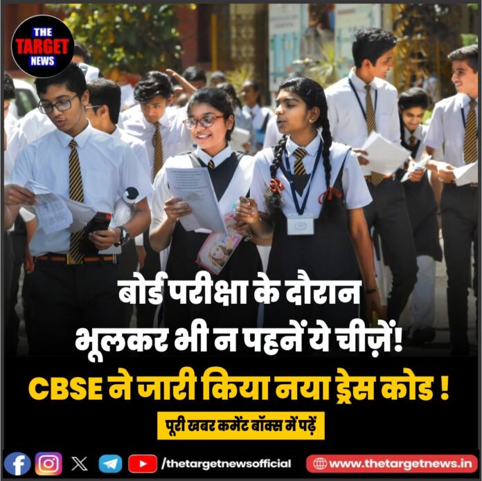 (CBSE Issues Strict Dress Code for Board Exams 2026)CBSE ने 2026 की बोर्ड परीक्षाओं को लेकर विद्यार्थियों के लिए सख्त ड्रेस कोड और जरूरी दिशा-निर्देश जारी किए हैं। बोर्ड का कहना है कि इन नियमों का उद्देश्य परीक्षा केंद्रों पर अनुशासन बनाए रखना, सुरक्षा जांच को तेज करना और विद्यार्थियों का समय बचाना है, ताकि वे बिना तनाव के परीक्षा दे सकें।