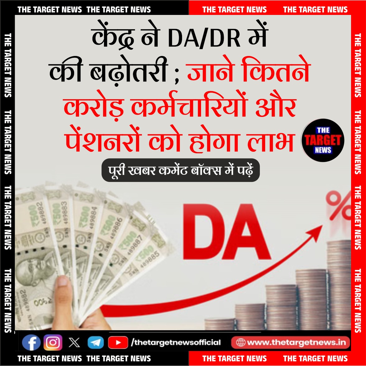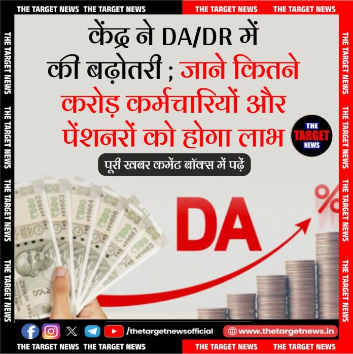 केंद्र ने DA/DR में की बढ़ोतरी ; जाने कितने करोड़ कर्मचारियों और पेंशनरों को होगा लाभ