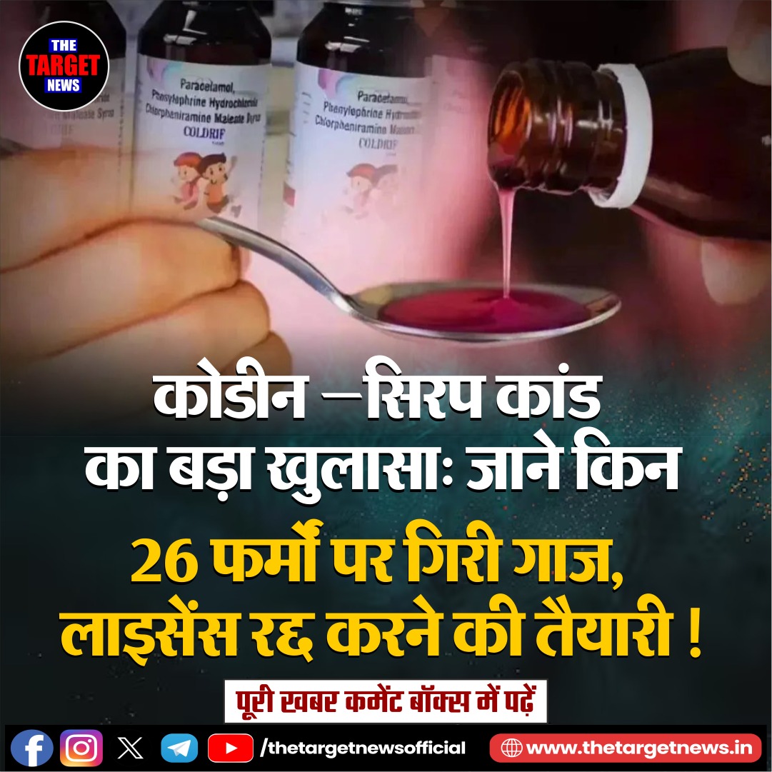 कोडीन कफ–सिरप कांड का बड़ा खुलासा: जाने किन 26 फर्मों पर गिरी गाज, लाइसेंस रद्द करने की तैयारी !