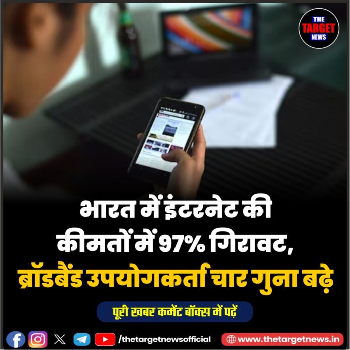 डेटा सस्ता और उपयोग बढ़ा: भारत में इंटरनेट डेटा की खपत में जबरदस्त वृद्धि हुई है। औसत उपयोग प्रति सब्सक्राइबर 61.66 MB से बढ़कर लगभग 25.25 GB प्रति माह हो गया है। इसी दौरान डेटा की कीमत 269 रुपये प्रति GB से घटकर लगभग 7.9 रुपये तक आ गई है। इस गिरावट ने न केवल इंटरनेट को किफायती बनाया बल्कि आम जनता की जेब पर पड़ने वाले बोझ को भी काफी कम किया।