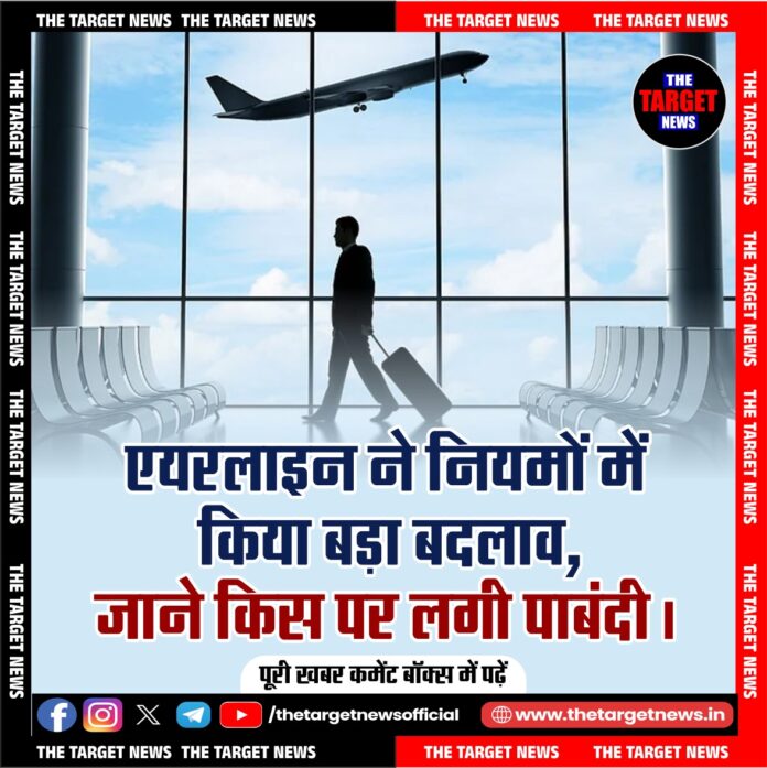 एयरलाइन ने नियमों में किया बड़ा बदलाव,जाने किस पर लगी पाबंदी।