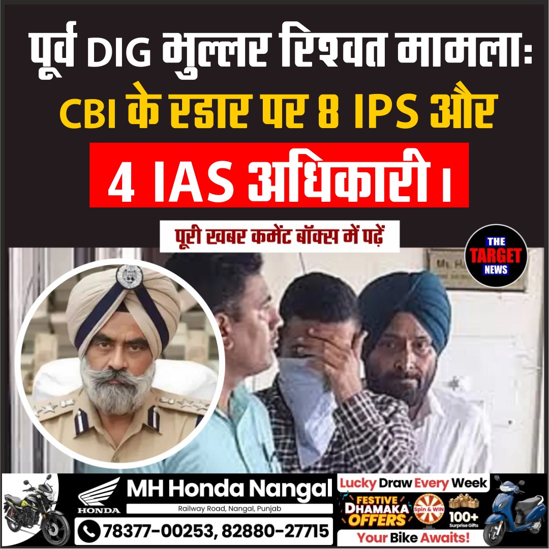 (Ex-DIG Bhullar Bribery Case: CBI Targets 8 IPS, 4 IAS Officers — Major Corruption Nexus Under Scanner)पंजाब के पूर्व डीआईजी हरचरण सिंह भुल्लर से जुड़े रिश्वतखोरी मामले में अब जांच की दिशा और भी गंभीर होती जा रही है। सीबीआई की जांच के दायरे में अब चंडीगढ़ में तैनात आठ आईपीएस और चार आईएएस अधिकारी भी आ गए हैं। सूत्रों के अनुसार, यह मामला प्रशासनिक और पुलिस तंत्र के भीतर गहराई तक फैले भ्रष्टाचार नेटवर्क को उजागर कर सकता है।