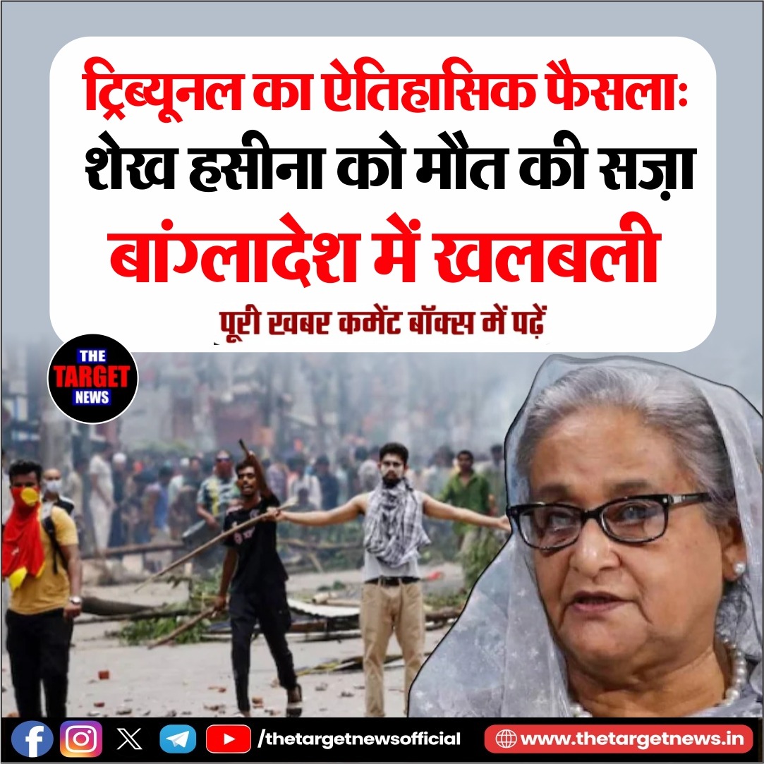 (International Tribunal Sentences Ex-PM Sheikh Hasina to Death)ढाका स्थित अंतरराष्ट्रीय अपराध ट्रिब्यूनल ने सोमवार को ऐतिहासिक फैसला सुनाते हुए बांग्लादेश की पूर्व प्रधानमंत्री शेख हसीना को मानवता के विरुद्ध अपराधों का दोषी करार दिया। अदालत ने 2024 के छात्र आंदोलन के दौरान हुई हत्याओं का मास्टरमाइंड बताते हुए उन्हें दो गंभीर आरोपों—हत्या के लिए उकसाने और हत्या का आदेश देने—में मौत की सज़ा सुनाई।