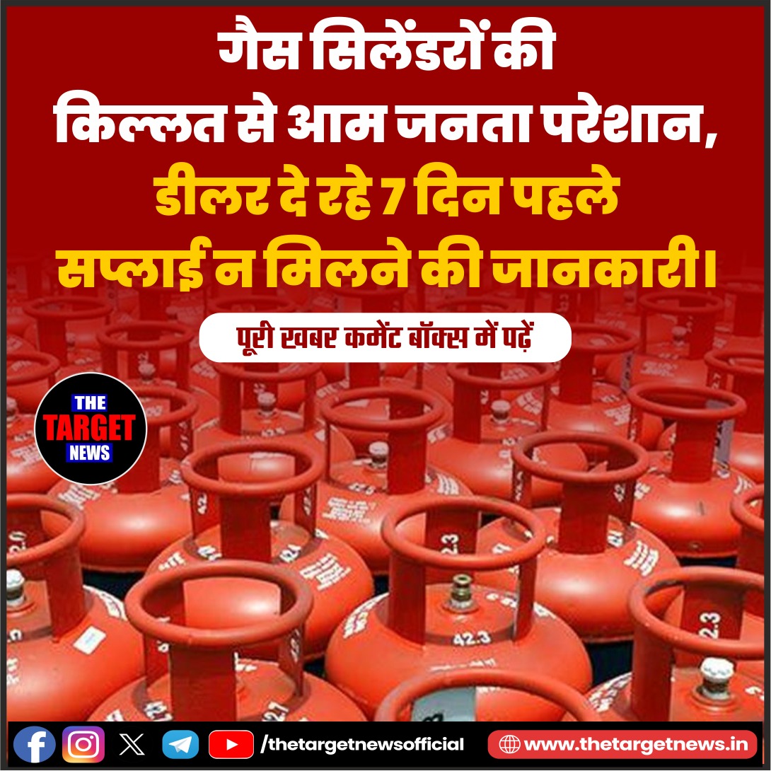 (Gas Cylinder Shortage Hits Public; Dealers Warn of 7-Day Delay in Supply)सर्दियों के मौसम के आगमन से पहले ही घरेलू गैस सिलेंडरों की सप्लाई में भारी कमी देखने को मिल रही है। डीलरों ने उपभोक्ताओं को फोन कर बताया है कि 7 दिनों से पहले सिलेंडर उपलब्ध नहीं हो पाएंगे। यह समस्या डेढ़ महीने से जारी है और फिलहाल जस की तस बनी हुई है। अधिकारी दावा कर रहे हैं कि स्थिति जल्द सामान्य होगी, लेकिन इंडेन और हिंदुस्तान गैस कंपनी से जुड़े अधिकांश डीलर अपनी मजबूरी बताते हुए ग्राहकों से माफी मांग रहे हैं।