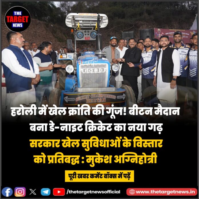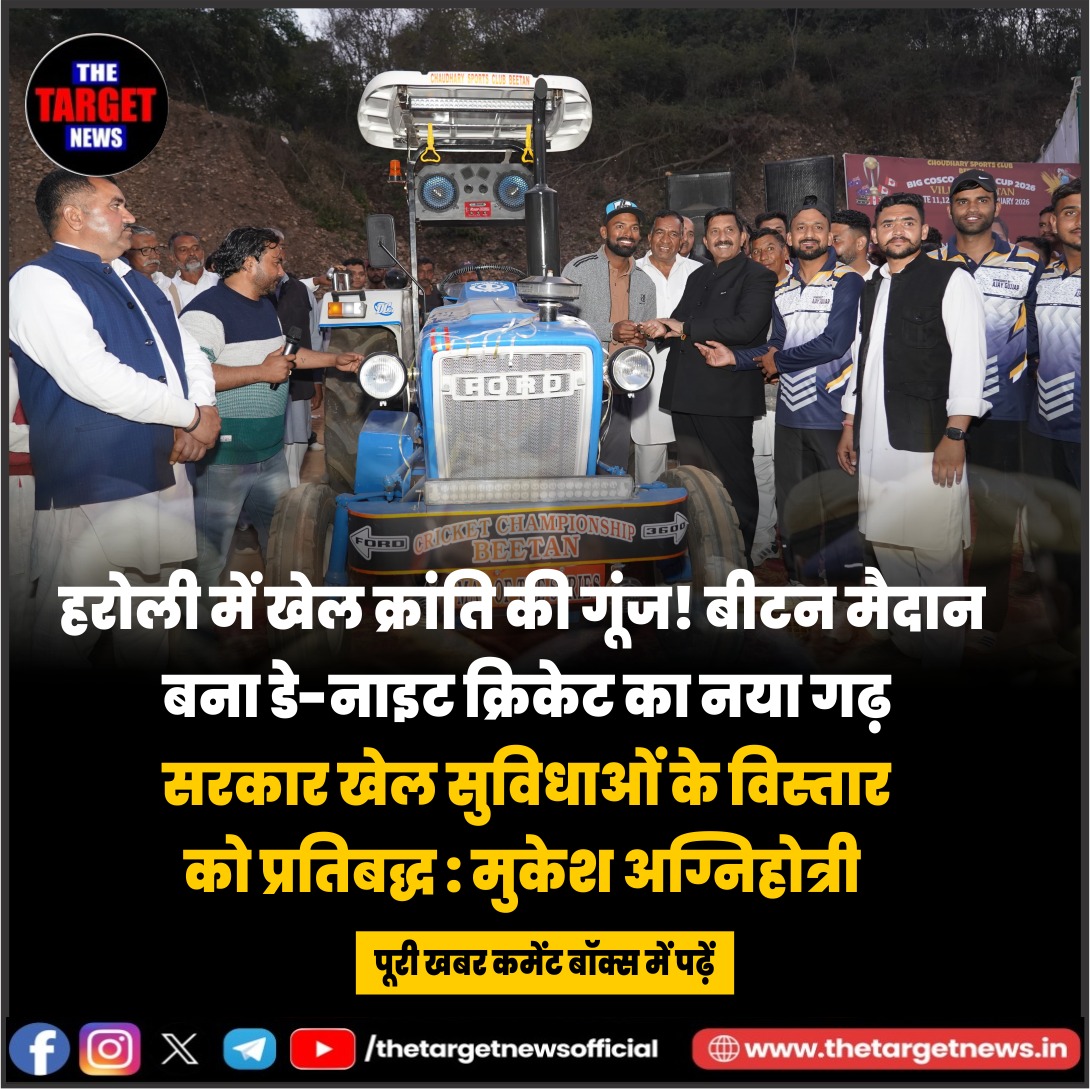 (Haroli Emerges as New Day-Night Cricket Hub, Sports Push Gets Boost)рдЦреЗрд▓ рдХреЗ рдореИрджрд╛рди рд╕реЗ рд╡рд┐рдХрд╛рд╕ рдХреА рдирдИ рдкрдЯрдХрдерд╛ рд▓рд┐рдЦреА рдЬрд╛ рд░рд╣реА рд╣реИ! рд╣рд░реЛрд▓реА рдХреЗ рдмреАрдЯрди рдЧрд╛рдВрд╡ рдореЗрдВ рд╢рд╣реАрджреЛрдВ рдХреА рд╕реНрдореГрддрд┐ рдореЗрдВ рдЖрдпреЛрдЬрд┐рдд 11рд╡реЗрдВ рдмрд┐рдЧ рдХреЙрд╕реНрдХреЛ рдХреНрд░рд┐рдХреЗрдЯ рдХрдк 2026 рдХрд╛ рд╕рдорд╛рдкрди рдЬреЛрд╢, рдЬреБрдиреВрди рдФрд░ рдЬрдирд╕рдорд░реНрдерди рдХреЗ рдмреАрдЪ рд╣реБрдЖред рдореБрдЦреНрдп рдЕрддрд┐рдерд┐ рдХреЗ рд░реВрдк рдореЗрдВ рдкрд╣реБрдВрдЪреЗ рдореБрдХреЗрд╢ рдЕрдЧреНрдирд┐рд╣реЛрддреНрд░реА рдиреЗ рдЦреЗрд▓ рд╕реБрд╡рд┐рдзрд╛рдУрдВ рдФрд░ рдХреНрд╖реЗрддреНрд░реАрдп рд╡рд┐рдХрд╛рд╕ рдХреЛ рд▓реЗрдХрд░ рдмрдбрд╝реЗ рдРрд▓рд╛рди рдХрд░ рдорд╛рд╣реМрд▓ рдХреЛ рдЙрддреНрд╕рд╛рд╣ рд╕реЗ рднрд░ рджрд┐рдпрд╛ред