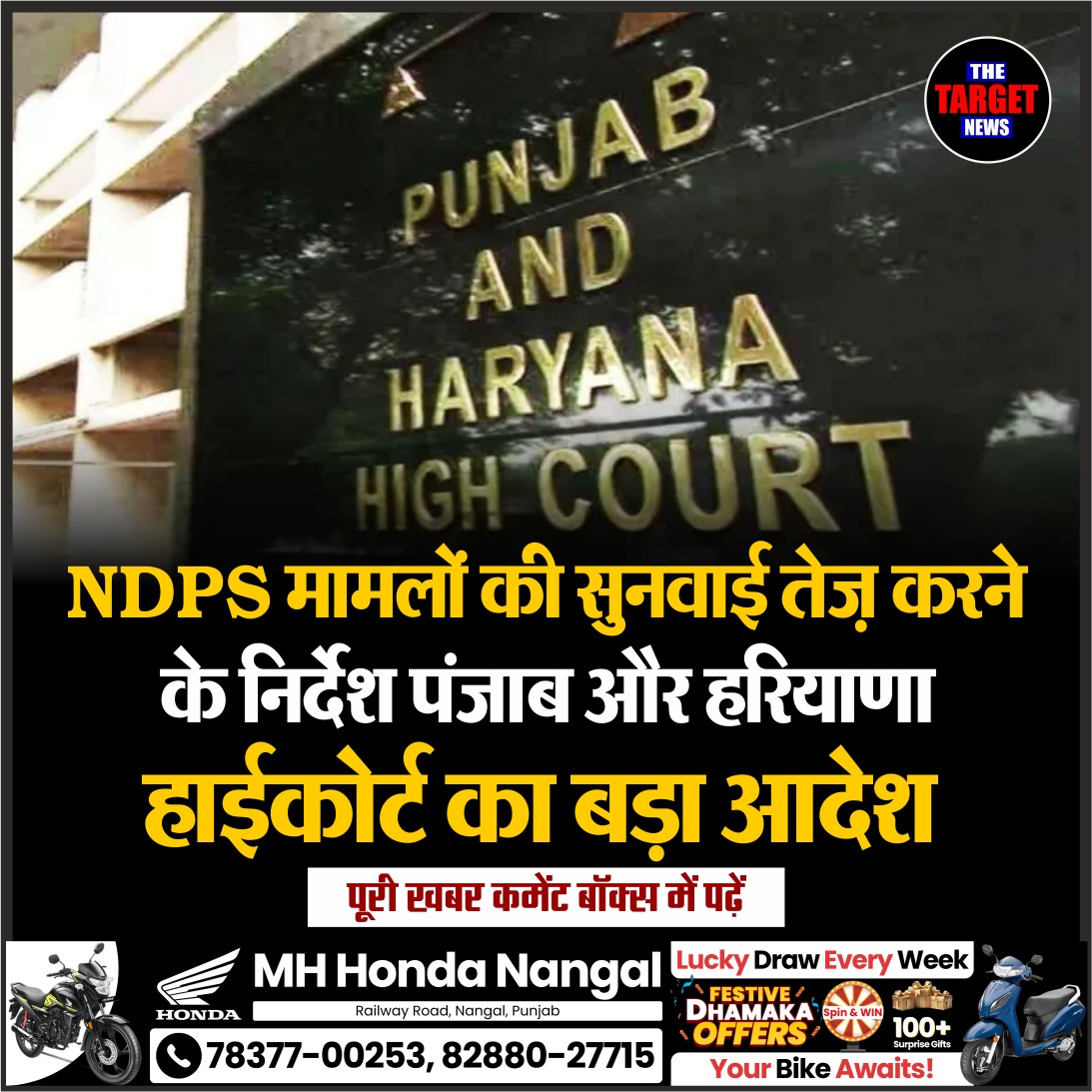 (HC directs faster trials in NDPS cases — Major order by Punjab & Haryana High Court)पंजाब और हरियाणा हाईकोर्ट ने मादक पदार्थ निरोधक अधिनियम (NDPS) से जुड़े मामलों की तेज़ और समयबद्ध सुनवाई सुनिश्चित करने के लिए विशेष अदालतों को सख्त निर्देश जारी किए हैं। यह आदेश जस्टिस अनूप चितकारा ने उस समय दिया जब उन्होंने एक आरोपी की चौथी ज़मानत याचिका खारिज की, जिसे 6 किलोग्राम ‘आइस’ (मेथ) और 21 किलोग्राम हेरोइन के साथ गिरफ़्तार किया गया था।