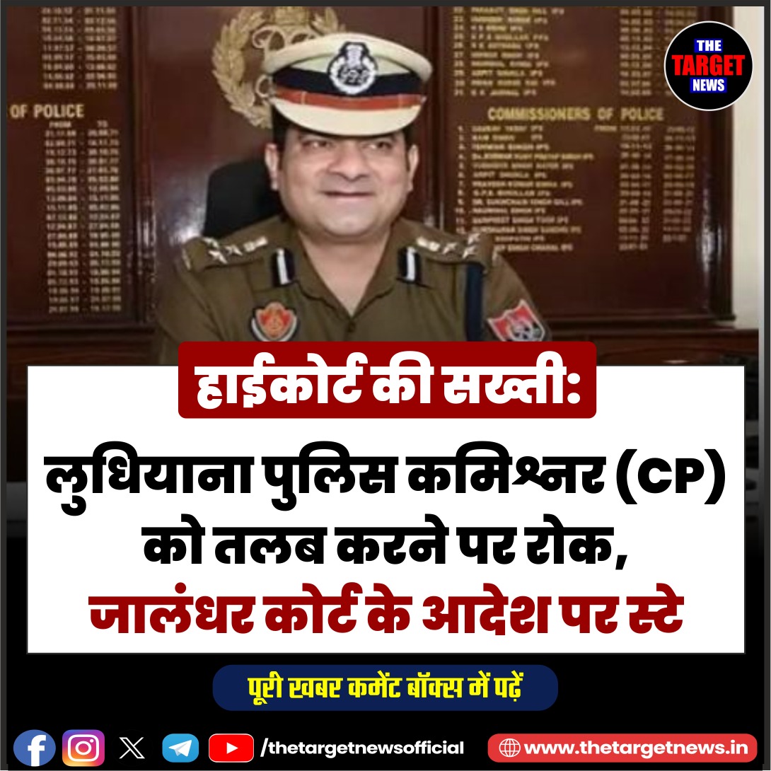 (High Court Steps In: Stay on Summoning of Ludhiana Police Commissioner)рдкрдВрдЬрд╛рдм рдПрд╡рдВ рд╣рд░рд┐рдпрд╛рдгрд╛ рд╣рд╛рдИрдХреЛрд░реНрдЯ рдиреЗ рд▓реБрдзрд┐рдпрд╛рдирд╛ рдХреЗ рдкреБрд▓рд┐рд╕ рдХрдорд┐рд╢реНрдирд░ (CP) рд╕реНрд╡рдкреНрди рд╢рд░реНрдорд╛ рдХреЛ NDPS рдорд╛рдорд▓реЗ рдореЗрдВ рдмрддреМрд░ рдЧрд╡рд╛рд╣ рддрд▓рдм рдХрд░рдиреЗ рдХреЗ рдЬрд╛рд▓рдВрдзрд░ рдХреЛрд░реНрдЯ рдХреЗ рдЖрджреЗрд╢ рдкрд░ рдХрдбрд╝рд╛ рд░реБрдЦ рдЕрдкрдирд╛рддреЗ рд╣реБрдП рд░реЛрдХ рд▓рдЧрд╛ рджреА рд╣реИред рд╣рд╛рдИрдХреЛрд░реНрдЯ рдиреЗ рд╕рд╛рдл рдХрд╣рд╛ рдХрд┐ рд╡рд░рд┐рд╖реНрда рдЕрдзрд┐рдХрд╛рд░рд┐рдпреЛрдВ рдХреЛ рдмрд┐рдирд╛ рдареЛрд╕ рдХрд╛рд░рдг рдЕрджрд╛рд▓рддреЛрдВ рдореЗрдВ рдШрд╕реАрдЯрдирд╛ рди рдХреЗрд╡рд▓ рдЯреНрд░рд╛рдпрд▓ рдХреЛ рд▓рдЯрдХрд╛рдиреЗ рдХреА рдХреЛрд╢рд┐рд╢ рд╣реИ, рдмрд▓реНрдХрд┐ рдиреНрдпрд╛рдпрд┐рдХ рдкреНрд░рдХреНрд░рд┐рдпрд╛ рдХрд╛ рджреБрд░реБрдкрдпреЛрдЧ рднреА рд╣реИред