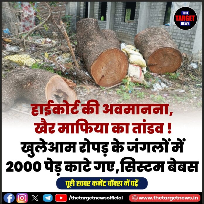 (High Court Contempt: Sand MafiaтАЩs Rampage as 2,000 Trees Felled in Ropar Forests)рдкрдВрдЬрд╛рдм рдФрд░ рд╣рд░рд┐рдпрд╛рдгрд╛ рд╣рд╛рдИрдХреЛрд░реНрдЯ рдХреЗ 24 рджрд┐рд╕рдВрдмрд░ рдХреЗ рд╕реНрдкрд╖реНрдЯ рдЖрджреЗрд╢реЛрдВ рдХреЛ рдареЗрдВрдЧрд╛ рджрд┐рдЦрд╛рддреЗ рд╣реБрдП рд░реЛрдкрдбрд╝ рдХреЗ рдЬрдВрдЧрд▓реЛрдВ рдореЗрдВ рдЦреИрд░ рдорд╛рдлрд┐рдпрд╛ рдЦреБрд▓реЗрдЖрдо рдХрд╣рд░ рдмрд░рдкрд╛ рд░рд╣рд╛ рд╣реИред рддрд╛рдЬрд╝рд╛ рдЬрд╛рдВрдЪ рдиреЗ рдкреНрд░рд╢рд╛рд╕рди рдФрд░ рдХрд╛рдиреВрди рд╡реНрдпрд╡рд╕реНрдерд╛ рдкрд░ рдЧрдВрднреАрд░ рд╕рд╡рд╛рд▓ рдЦрдбрд╝реЗ рдХрд░ рджрд┐рдП рд╣реИрдВтАФрдЕрдм рддрдХ рдХрд░реАрдм 1500 рд╕реЗ 2000 рдЦреИрд░ рдХреЗ рдкреЗрдбрд╝ рдЕрд╡реИрдз рд░реВрдк рд╕реЗ рдХрд╛рдЯреЗ рдЬрд╛ рдЪреБрдХреЗ рд╣реИрдВред рдирд╡рд╛рдВрд╢рд╣рд░ рдФрд░ рдЧрдврд╝рд╢рдВрдХрд░ рд░реЗрдВрдЬ рдХреА рд╡рди рдЯреАрдореЛрдВ рдХреЛ рдЬрдВрдЧрд▓реЛрдВ рдореЗрдВ рдмрдбрд╝реА рд╕рдВрдЦреНрдпрд╛ рдореЗрдВ рдареВрдВрда рдорд┐рд▓реЗ рд╣реИрдВ, рдЬрд┐рд╕рдиреЗ рдкреВрд░реЗ рдиреЗрдЯрд╡рд░реНрдХ рдХреА рдкреЛрд▓ рдЦреЛрд▓ рджреА рд╣реИред