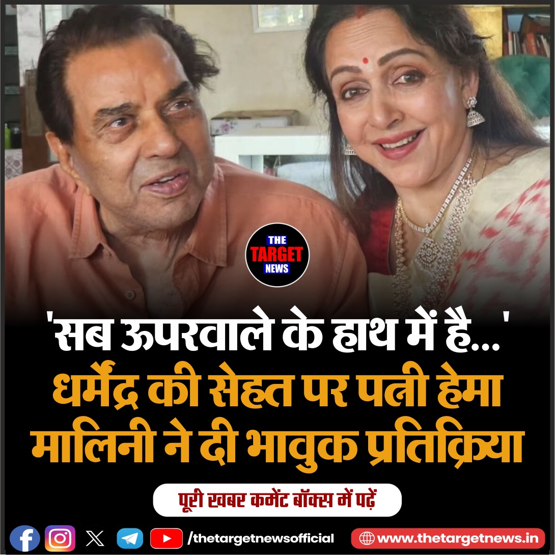 इस बीच, धर्मेंद्र की सेहत को लेकर सोशल मीडिया पर झूठी खबरें फैलने लगीं, जिनमें उनकी मौत की अफवाहें भी शामिल थीं। इस पर नाराज़गी जताते हुए हेमा मालिनी ने सोशल मीडिया पर लिखा, “जो हो रहा है, वह माफ़ करने योग्य नहीं है। जिम्मेदार चैनल किसी व्यक्ति के बारे में इतनी झूठी खबरें कैसे फैला सकते हैं? यह बेहद अपमानजनक और गैर-जिम्मेदाराना है।”