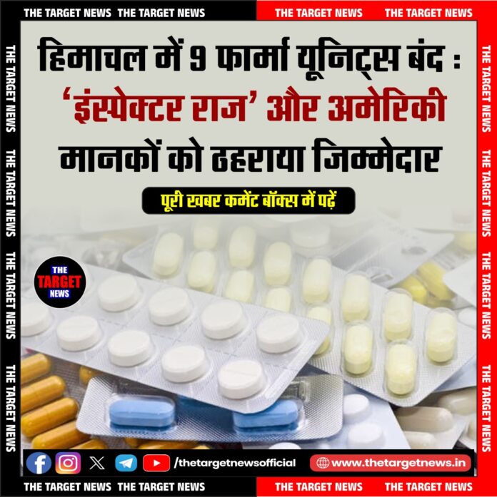 (9 Pharma Units Shut in Himachal: ‘Inspector Raj’ and US Standards Blamed)हिमाचल प्रदेश के कांगड़ा जिले की मध्यम, छोटे और सूक्ष्म दवा उद्योगों पर संकट के बादल गहराते जा रहे हैं। अब तक 9 फार्मा यूनिट्स ने ताले जड़ दिए हैं, जबकि कई और बंद होने की कगार पर हैं। उद्योग जगत का कहना है कि यदि सरकार ने तात्कालिक कदम नहीं उठाए तो इसका असर प्रदेश की दवा उत्पादन क्षमता पर भारी पड़ेगा और देशभर में आवश्यक दवाओं की कमी पैदा हो सकती है।