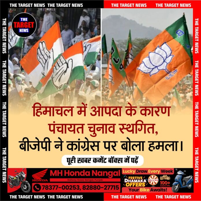 हिमाचल में आपदा के कारण पंचायत चुनाव स्थगित, बीजेपी ने कांग्रेस पर बोला हमला।