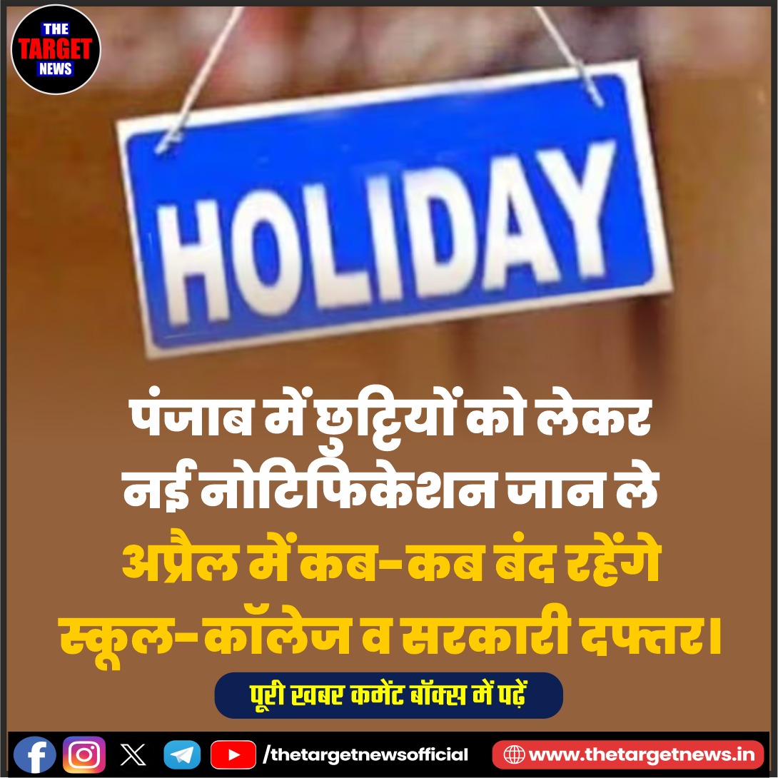 इन छुट्टियों के चलते सरकारी कामकाज प्रभावित हो सकता है, इसलिए जरूरी काम पहले ही निपटा लेना बेहतर रहेगा। कुल मिलाकर, अप्रैल का यह समय पंजाब के लोगों के लिए त्योहार और आराम दोनों लेकर आ रहा है।