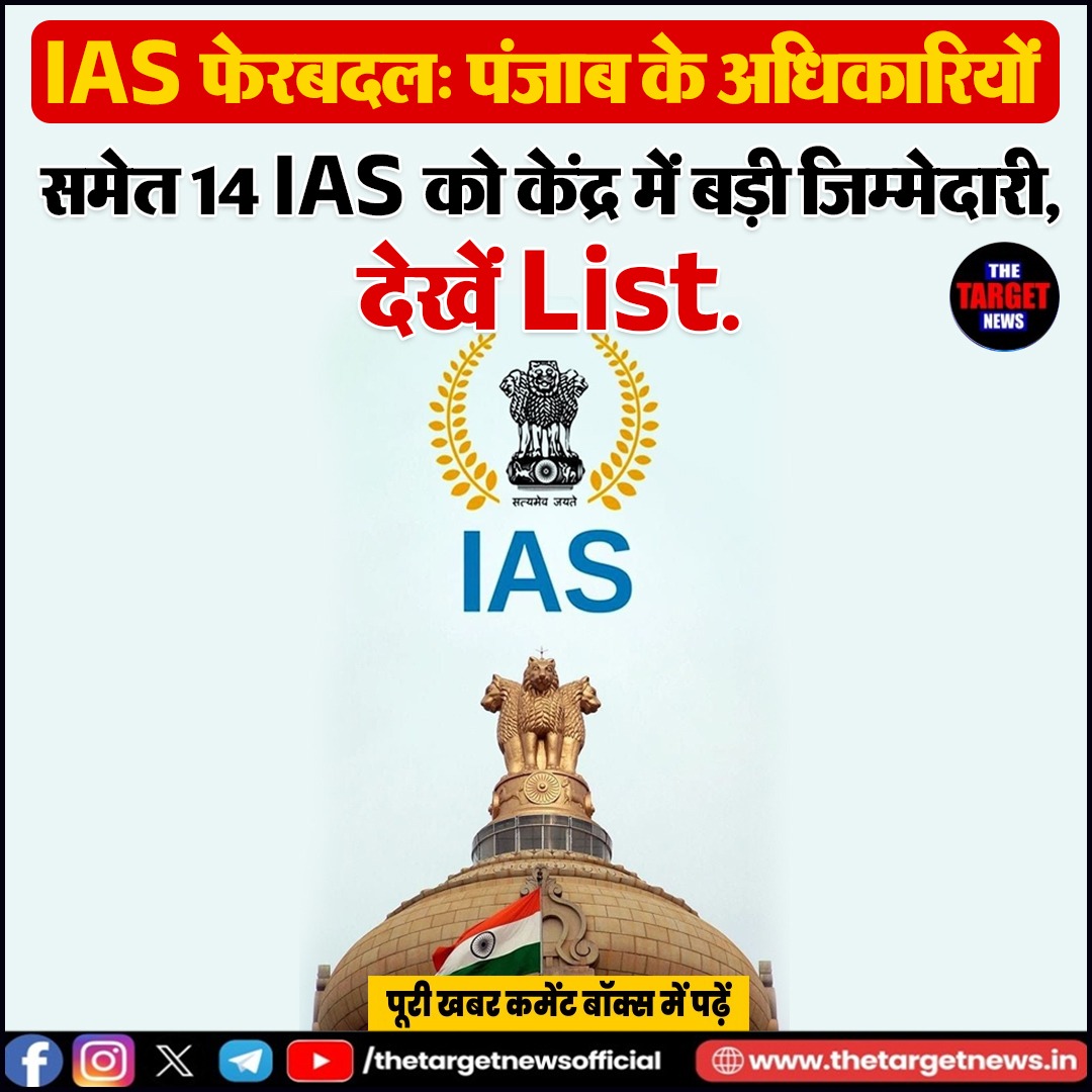 IAS फेरबदल: पंजाब के अधिकारियों समेत 14 IAS को केंद्र में बड़ी जिम्मेदारी,देखें List.