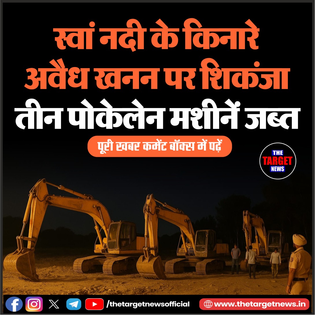 (Crackdown on Illegal Mining Near Swan River: Three Poclain Machines Seized)रूपनगर जिले में स्वां नदी के किनारे अवैध खनन पर बड़ी कार्रवाई करते हुए प्रशासन ने शनिवार आधी रात को छापा मारकर तीन पोकेलेन मशीनें ज़ब्त की हैं। यह मशीनें स्वां नदी के अलग्रां गांव के अस्थायी पुल के पास अवैध खनन में लिप्त पाई गईं।