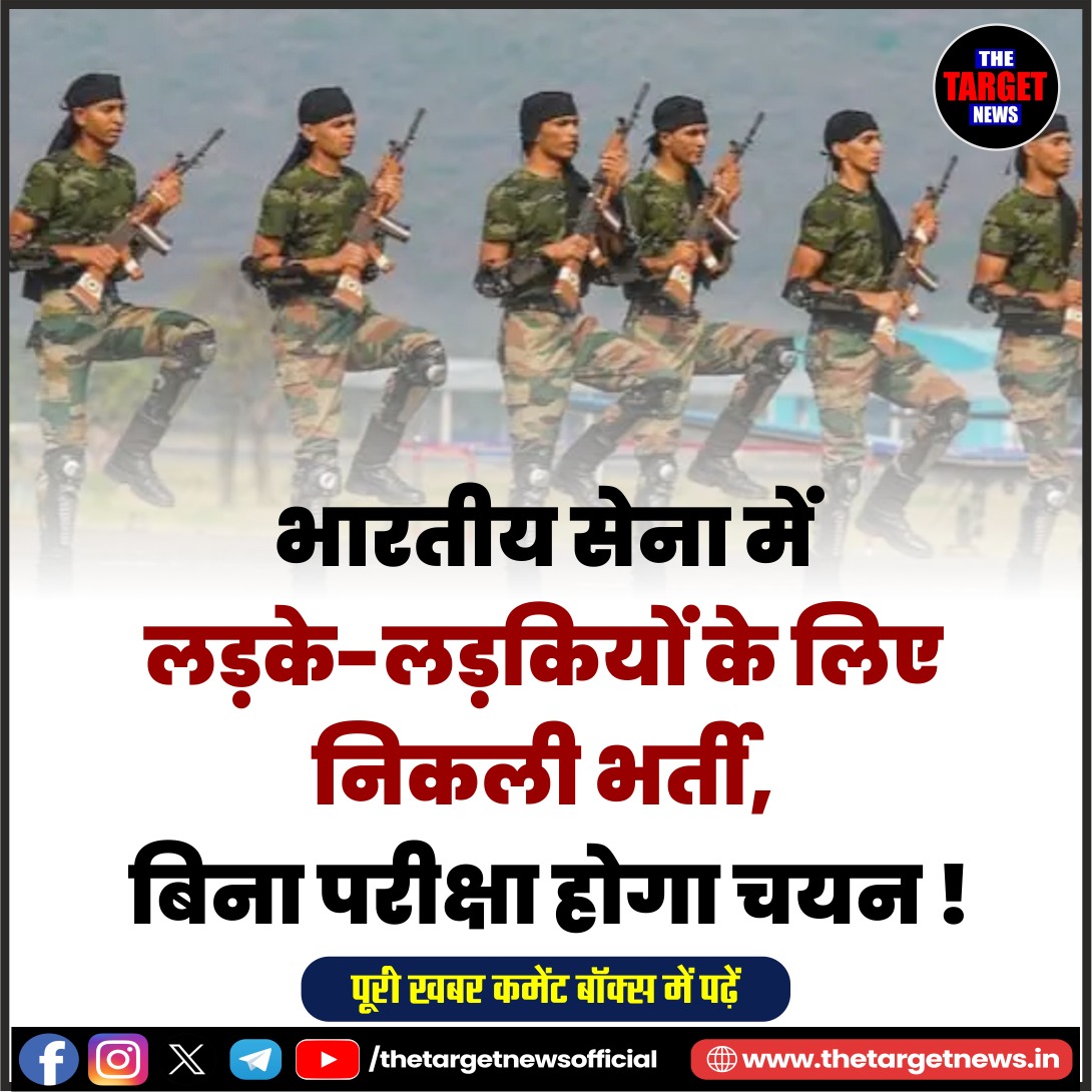भारतीय सेना में लड़के-लड़कियों के लिए निकली भर्ती, बिना परीक्षा होगा चयन !