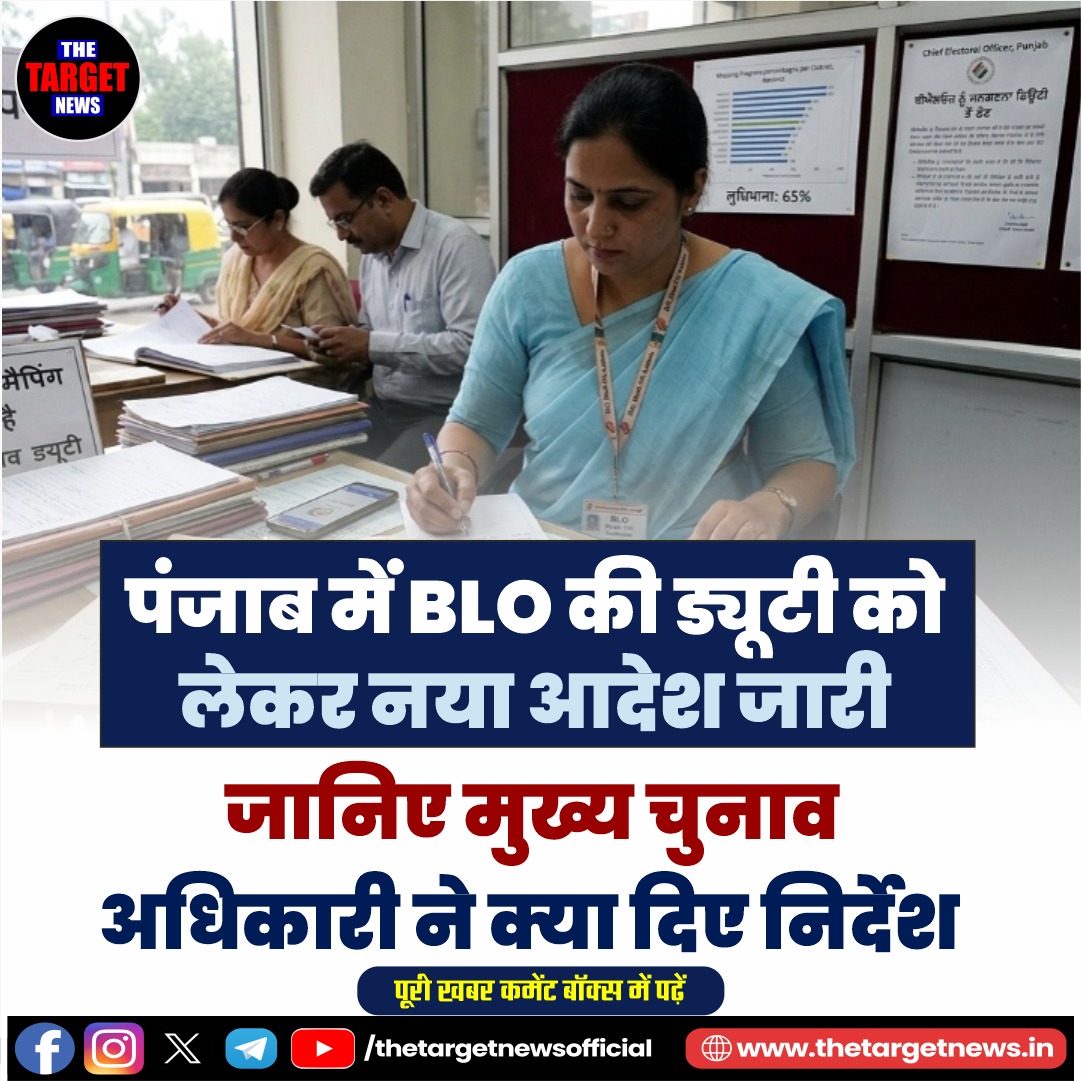 (A new directive regarding BLO duties has been issued in Punjab; the Chief Electoral Officer has given strict instructions.) पंजाब में जनगणना की तैयारियां तेज़ हो चुकी हैं, लेकिन इसी बीच एक बड़ा प्रशासनिक फैसला सामने आया है जिसने पूरे सिस्टम को हिला दिया है। मुख्य चुनाव अधिकारी (CEO) पंजाब ने साफ़ शब्दों में आदेश जारी करते हुए कहा है कि बी.एल.ओ. (बूथ लेवल ऑफिसर) को जनगणना ड्यूटी से तुरंत हटाया जाए।