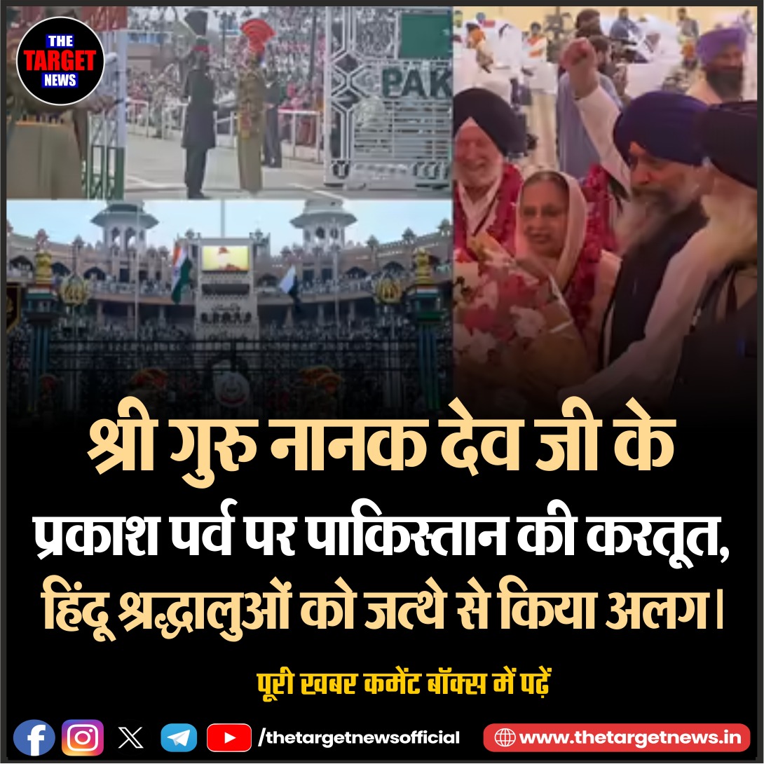 (Pakistan stops Hindu pilgrims from joining Sikh group for Guru Nanak Jayanti pilgrimage)श्री गुरु नानक देव जी के प्रकाश पर्व के मौके पर पाकिस्तान ने एक विवादित कदम उठाया है। वाघा सीमा पर पहुंचे हिंदू श्रद्धालुओं को सिख जत्थे के साथ पाकिस्तान जाने की अनुमति नहीं दी गई। बताया जा रहा है कि हिंदू सदस्यों ने सभी इमिग्रेशन औपचारिकताएँ पूरी कर ली थीं, लेकिन पाकिस्तानी अधिकारियों ने उन्हें अचानक रोककर वापस भेज दिया। भारतीय अधिकारियों ने इसे पाकिस्तान का “चौंकाने वाला और अभूतपूर्व” कदम बताया है।