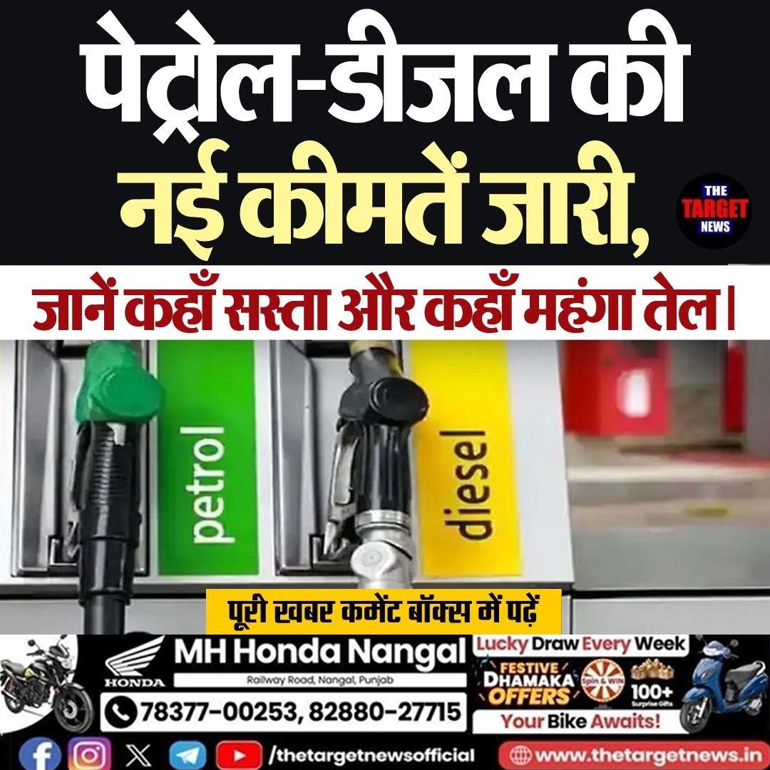 पेट्रोल-डीजल की नई कीमतें जारी, जानें कहाँ सस्ता और कहाँ महंगा तेल।