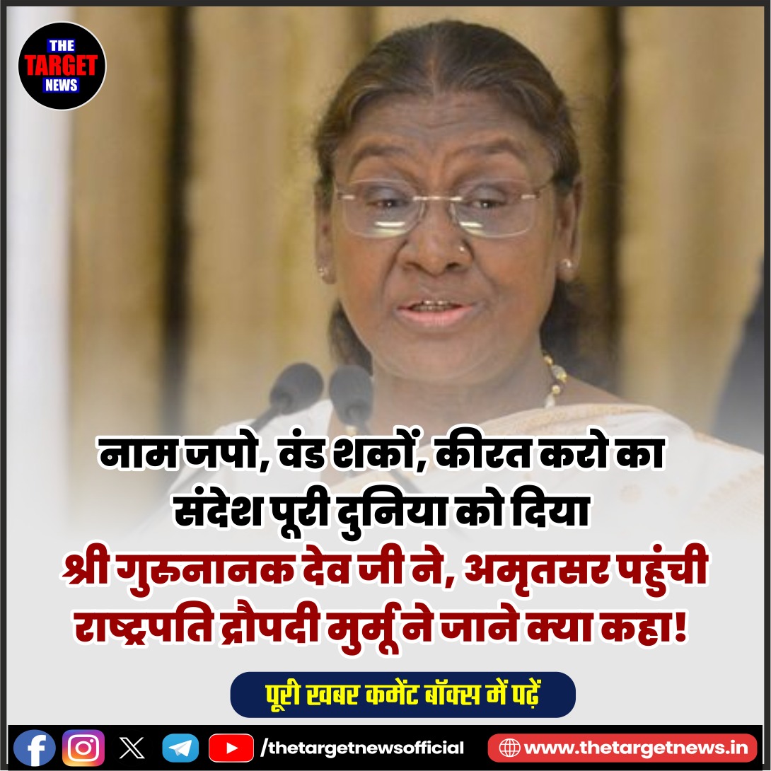 (President Murmu Highlights Guru Nanak’s Message of Social Harmony in Amritsar)अमृतसर की पावन धरती से सामाजिक सद्भाव, शिक्षा और महिला सशक्तिकरण का सशक्त संदेश देते हुए राष्ट्रपति द्रौपदी मुर्मू ने गुरु नानक देव जी के सिद्धांतों को आज के समय में और भी प्रासंगिक बताया। गुरु नानक देव विश्वविद्यालय (GNDU) के दीक्षांत समारोह को संबोधित करते हुए राष्ट्रपति ने कहा कि “नाम जपो, किरत करो, वंड छको” केवल एक धार्मिक उपदेश नहीं, बल्कि सामाजिक समरसता और मानव कल्याण का सार्वकालिक सूत्र है, जिसे अपनाकर समाज की अधिकांश समस्याओं का समाधान संभव है।