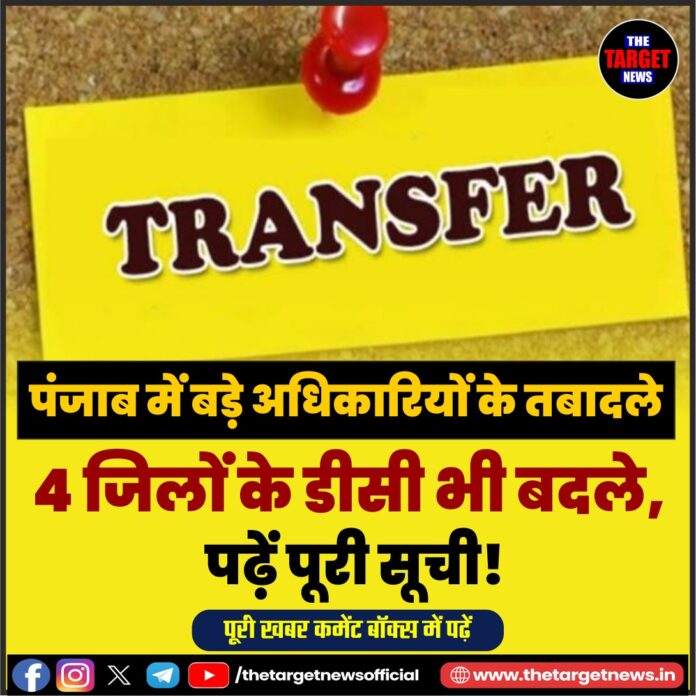 (Major Administrative Reshuffle in Punjab)पंजाब सरकार ने प्रशासनिक स्तर पर बड़ा कदम उठाते हुए एक व्यापक फेरबदल किया है, जो इस समय राज्य की राजनीति और ब्यूरोक्रेसी में चर्चा का विषय बना हुआ है। इस बड़े प्रशासनिक बदलाव के तहत कुल 26 वरिष्ठ अधिकारियों के तबादले किए गए हैं। खास बात यह है कि इनमें 4 जिलों के डिप्टी कमिश्नर भी शामिल हैं, जिससे जमीनी स्तर पर प्रशासनिक कार्यप्रणाली में बदलाव की उम्मीद की जा रही है।
