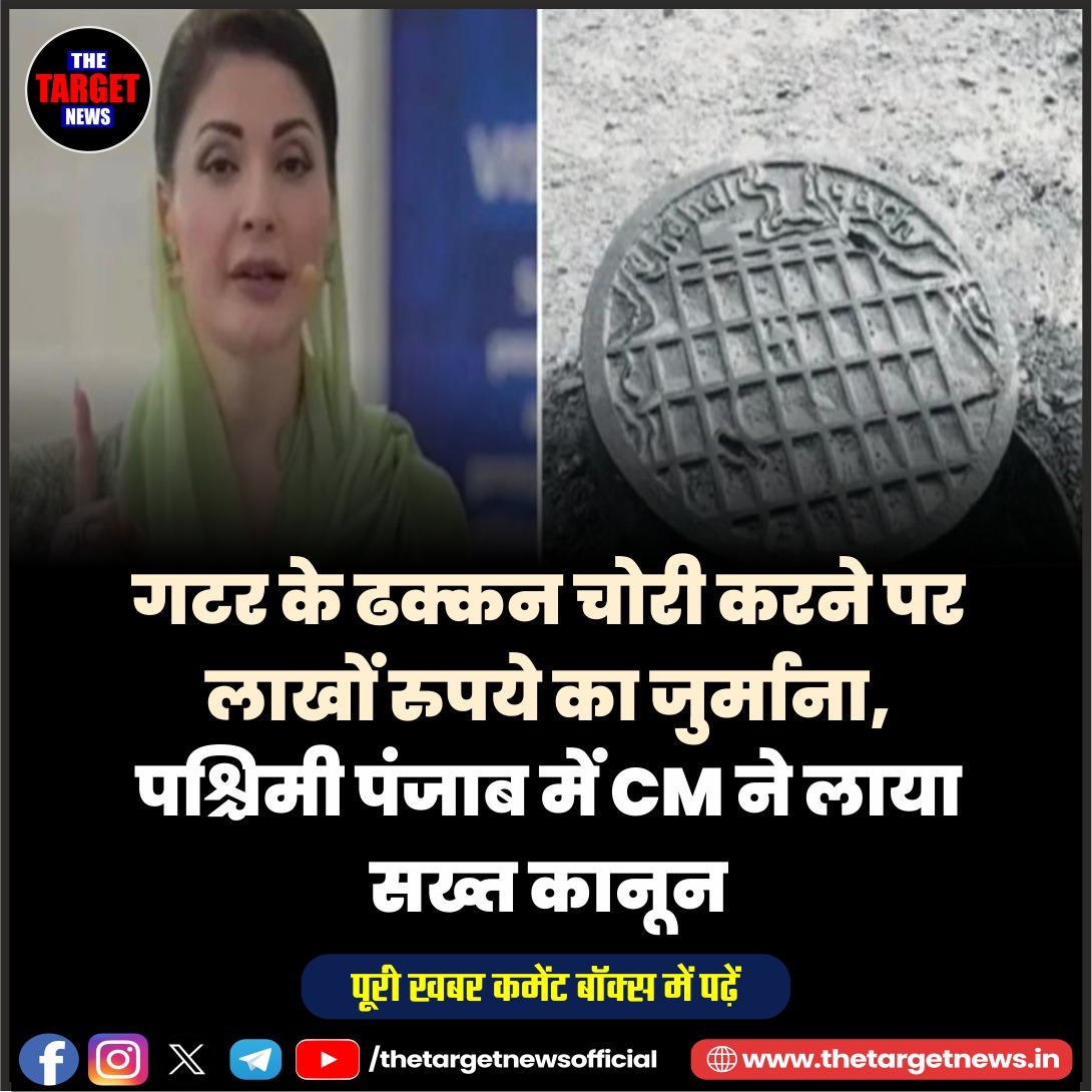 (Punjab CM Imposes ₹50 Lakh Fine for Manhole Theft)पाकिस्तान में आर्थिक मंदहाली के बीच एक अजीब मामला सामने आया है। पश्चिमी पंजाब में गटर (मैनहोल) के ढक्कनों की लगातार हो रही चोरी ने सरकार की नींद उड़ा दी है। इस समस्या से निपटने के लिए मुख्यमंत्री मरियम नवाज़ ने एक बेहद सख्त कानून लागू करने का ऐलान किया है, जिसके तहत दोषियों को भारी जुर्माना और लंबी जेल की सजा दी जाएगी।