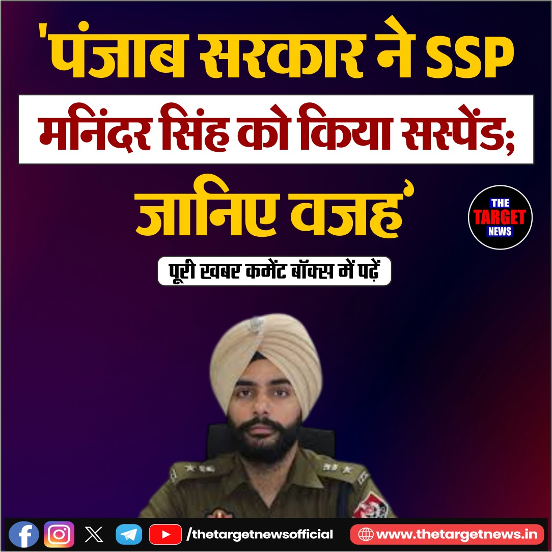 (Punjab Govt Suspends SSP Maninder Singh; Know the Reason)एक बड़े घटनाक्रम में, पंजाब सरकार ने शनिवार को अमृतसर ग्रामीण के वरिष्ठ पुलिस अधीक्षक (SSP) मनिंदर सिंह को सस्पेंड कर दिया। प्राप्त जानकारी के अनुसार, गैंगस्टरों के खिलाफ कार्रवाई करने में विफल रहने के कारण मनिंदर सिंह को अमृतसर ग्रामीण SSP के पद से निलंबित किया गया है।