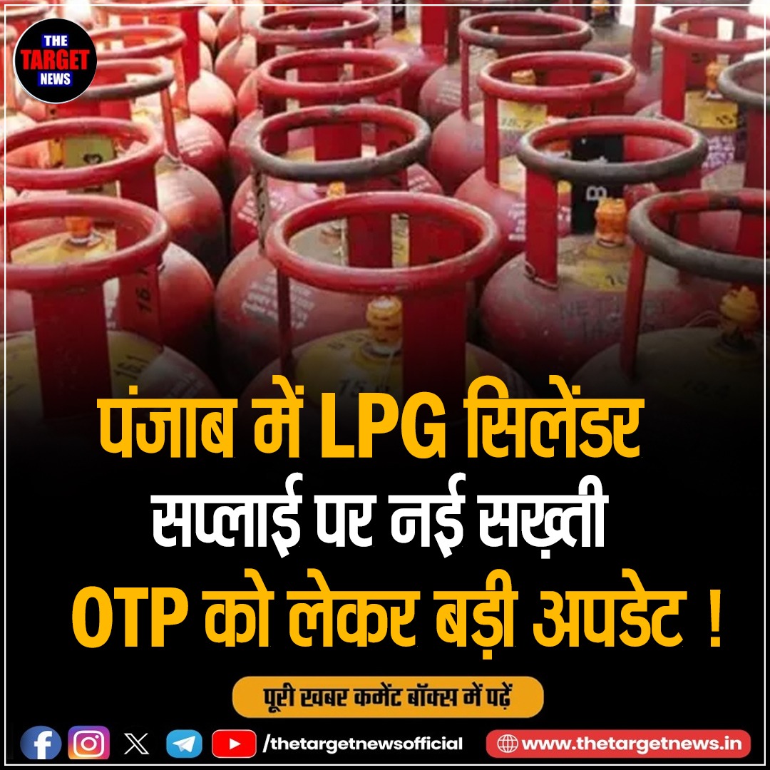 (New OTP Rule for LPG Cylinders Shakes Up Punjab Consumers)पंजाब में घरेलू LPG गैस सिलेंडर इस्तेमाल करने वालों के लिए बड़ी खबर सामने आई है। केंद्रीय पेट्रोलियम और प्राकृतिक गैस मंत्रालय ने गैस की कालाबाज़ारी और दुरुपयोग पर नकेल कसने के लिए नई अधिसूचना जारी की है। इसके तहत अब किसी भी उपभोक्ता को गैस सिलेंडर की सप्लाई तभी दी जाएगी, जब वह अपने गैस एजेंसी में रजिस्टर्ड मोबाइल नंबर पर आए ओटीपी (डी.ए.सी. कोड) को सही-सही बताएगा।