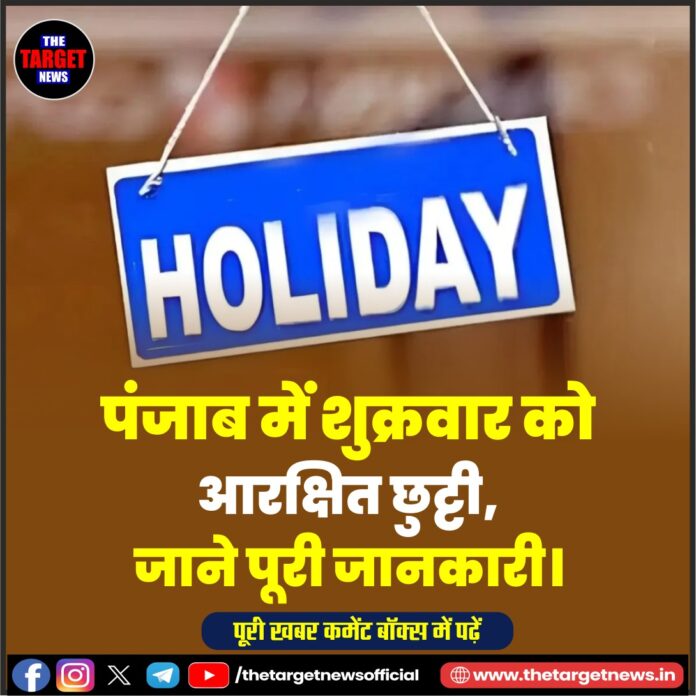पंजाब में शुक्रवार को आरक्षित छुट्टी, जाने पूरी जानकारी।
