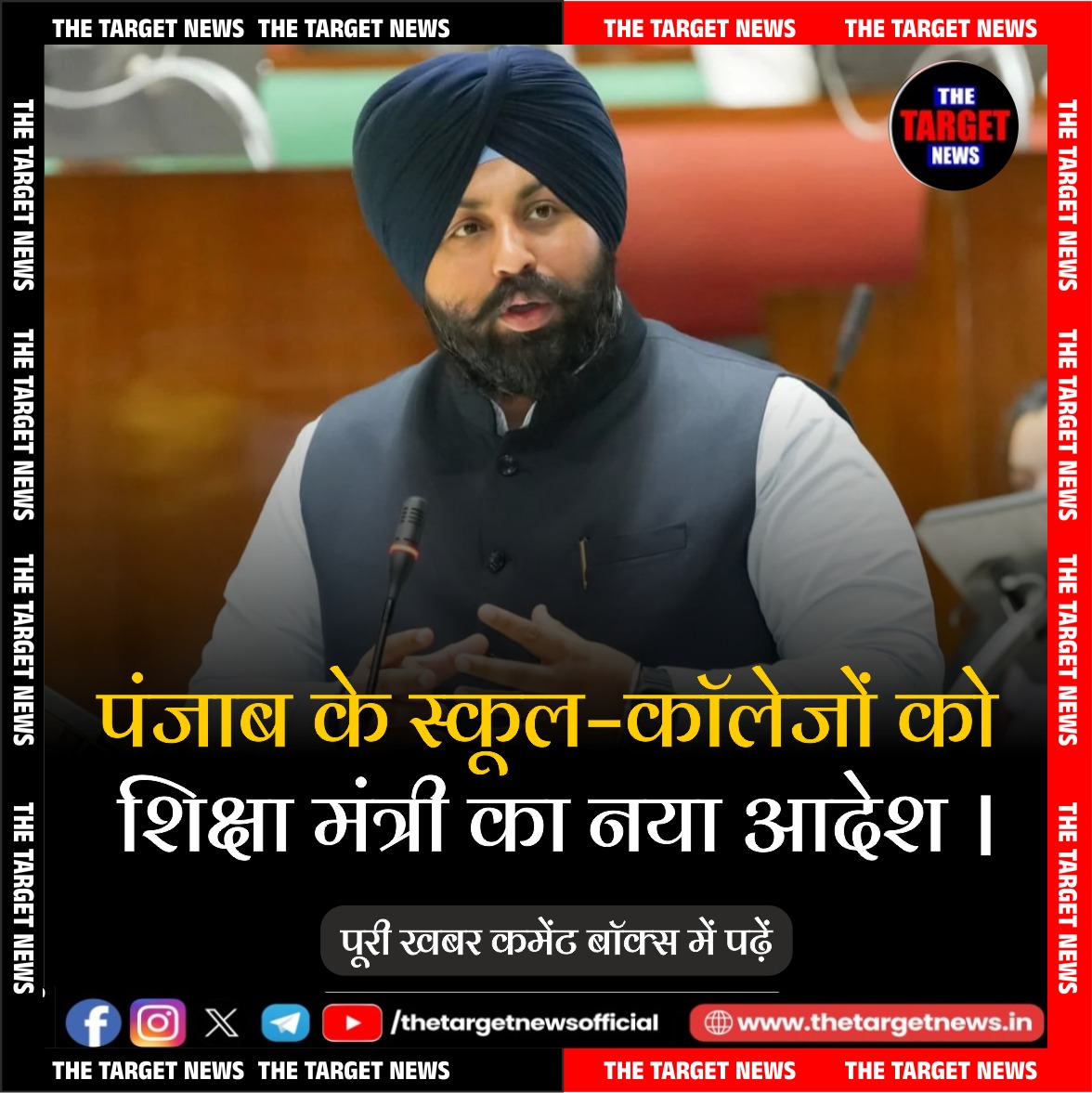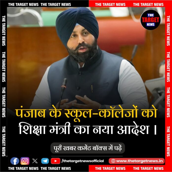 पंजाब के स्कूल–कॉलेजों को शिक्षा मंत्री का नया आदेश ।