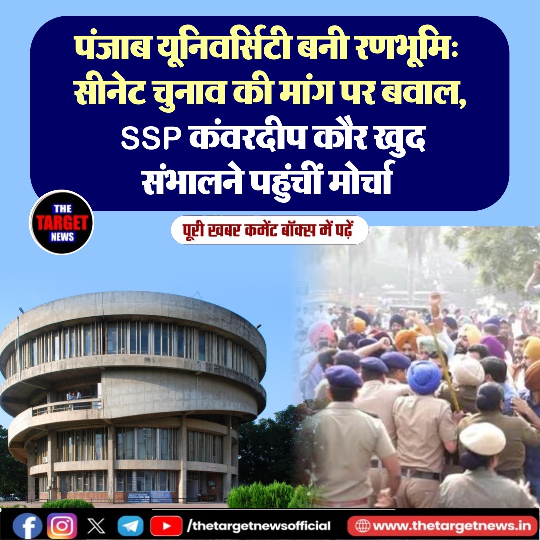 (Clashes Erupt at Punjab University Over Senate Poll Demand)चंडीगढ़ स्थित पंजाब यूनिवर्सिटी सोमवार को रणभूमि में तब्दील हो गई, जब सीनेट इलेक्शन की तारीख घोषित करने की मांग को लेकर छात्रों और पुलिस के बीच जोरदार झड़प हो गई। सुबह दस बजे से शुरू हुआ विरोध दोपहर तक हिंसक रूप लेता गया। प्रदर्शनकारियों ने पुलिस से धक्का-मुक्की करते हुए गेट नंबर 1 को तोड़ दिया और PGI रोड से यूनिवर्सिटी कैंपस में घुस गए।