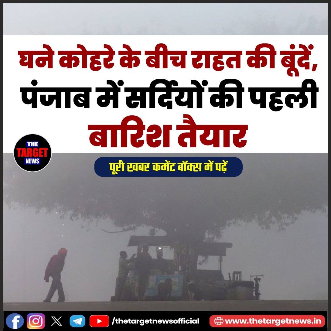 इसी बीच पंजाब के लोगों के लिए राहत भरी खबर भी सामने आई है। मौसम विभाग के अनुसार सर्दियों की पहली बारिश 20 दिसंबर को दस्तक दे सकती है। इस हल्की बारिश के कारण न सिर्फ मौसम में ठंडक बढ़ेगी, बल्कि लंबे समय से छाए घने कोहरे से भी राहत मिलने की संभावना जताई जा रही है। विभाग का कहना है कि बारिश के बाद विज़िबिलिटी में सुधार हो सकता है, जिससे यातायात व्यवस्था भी धीरे-धीरे सामान्य हो सकेगी।