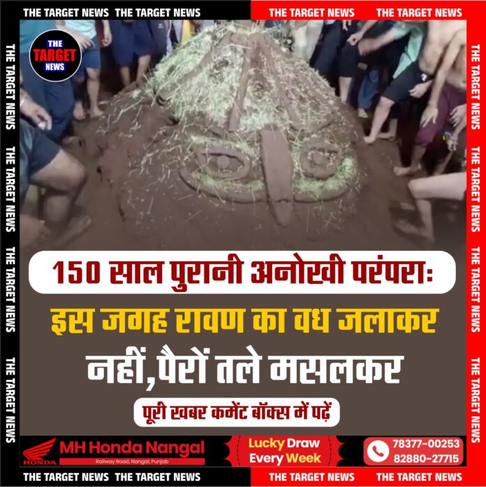 (150-Year-Old Tradition: Crushing Ravana Underfoot in Rajasthan)विजयदशमी पर जहां पूरा देश रावण के पुतले को जलाकर बुराई पर अच्छाई की जीत का जश्न मनाता है, वहीं राजस्थान का कोटा क्षेत्र इस पर्व को अपने अलग अंदाज में मनाने के लिए जाना जाता है। यहां जेठी समुदाय द्वारा निभाई जाने वाली एक परंपरा देशभर में चर्चा का विषय बनी रहती है, जिसमें रावण का वध अग्नि से नहीं, बल्कि पैरों तले मसलकर किया जाता है।