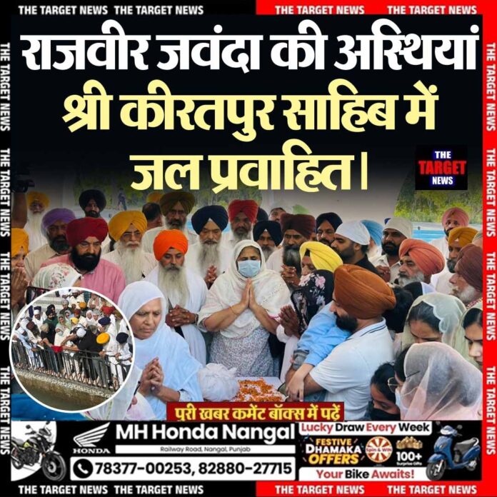 (Rajvir Jawanda’s ashes immersed at Sri Kiratpur Sahib)पंजाबी संगीत जगत के प्रसिद्ध गायक राजवीर जवंदा को उनके चाहने वालों ने आज अंतिम विदाई दी। उनके निधन के बाद परिवार द्वारा उनकी अस्थियों का श्री कीरतपुर साहिब स्थित गुरुद्वारा पातालपुरी साहिब के निकट बने सतलुज नदी के घाट पर जल प्रवाह किया गया। इस मौके पर वातावरण पूरी तरह भावुक हो उठा।