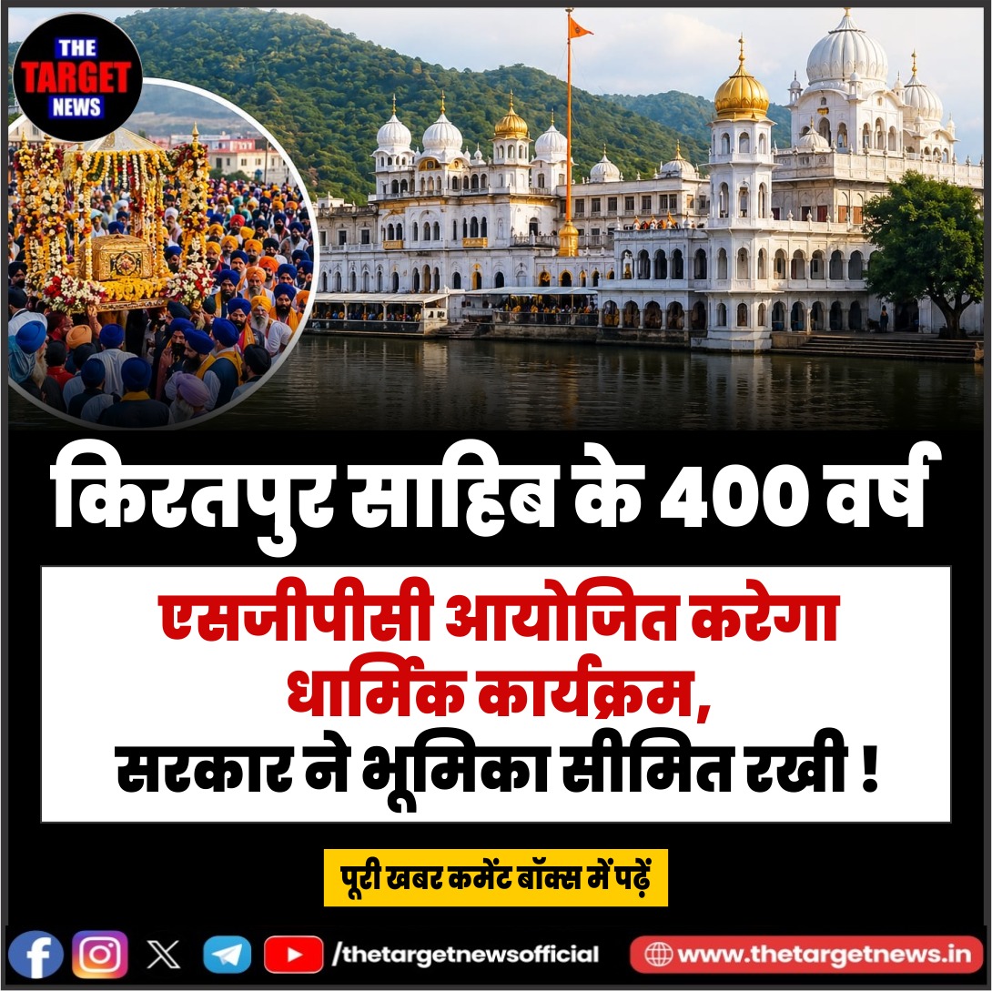 (SGPC to organize religious events for 400 years of Kiratpur Sahib; government keeps its role limited!) 1 मई को ऐतिहासिक नगर किरतपुर साहिब अपनी स्थापना के 400 वर्ष पूरे करेगा। इस अवसर को मनाने के लिए एसजीपीसी 29 अप्रैल से 1 मई तक अखंड पाठ, कीर्तन दरबार और नगर कीर्तन सहित विभिन्न धार्मिक कार्यक्रमों का आयोजन कर रहा है।
