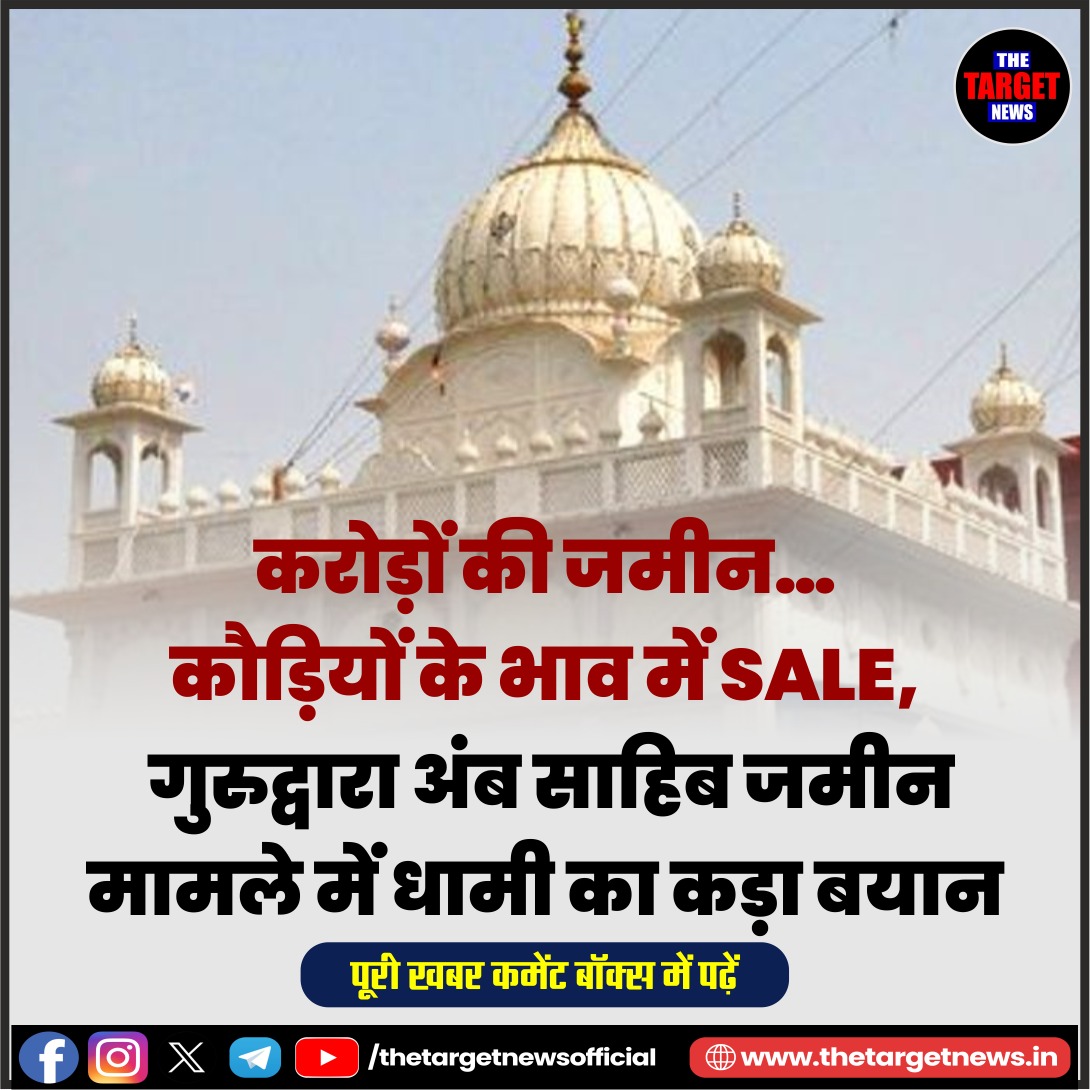 (SGPC Chief Cracks Down on Amb Sahib Land Scam)मोहाली के फेज़-8 स्थित ऐतिहासिक गुरुद्वारा अंब साहिब से जुड़ी 44 मरले की करोड़ों रुपये मूल्य की जमीन को कौड़ियों के भाव बेचने के गंभीर मामले में श्रोमणी गुरुद्वारा प्रबंधक समिति (SGPC) के अध्यक्ष हरजिंदर सिंह धामी ने प्रेस कॉन्फ्रेंस कर कड़ा रुख अपनाया।