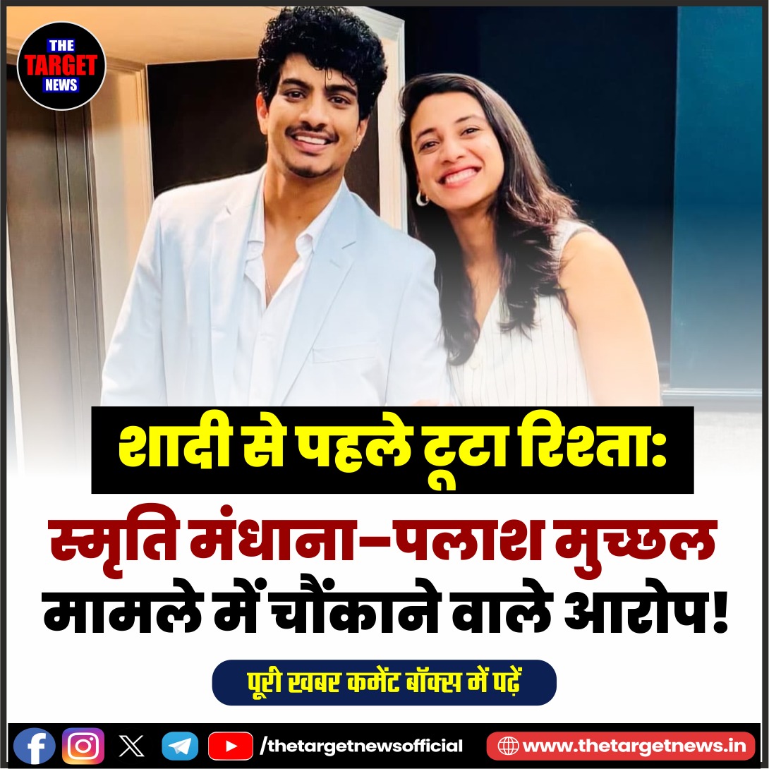गौरतलब है कि स्मृति मंधाना और पलाश मुच्छल की शादी 23 नवंबर 2025 को महाराष्ट्र के सांगली में तय थी। उस समय शादी टलने की वजह स्मृति के पिता श्रीनिवास मंधाना की अचानक तबीयत खराब होना और पलाश की थकान बताई गई थी। बाद में दिसंबर में दोनों ने सोशल मीडिया के ज़रिए शादी रद्द होने की आधिकारिक घोषणा की थी। अब इन नए खुलासों के बाद यह मामला और भी चर्चा में आ गया है।